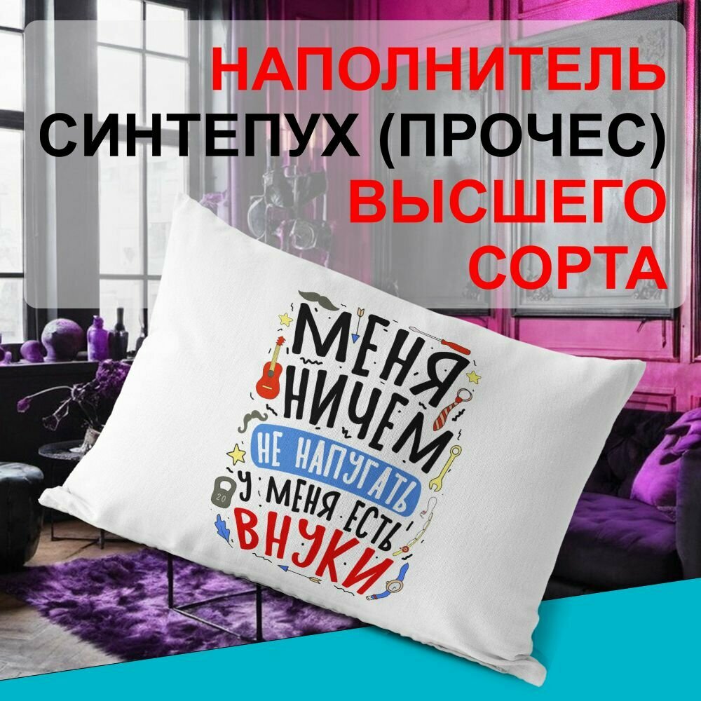 Декоративная подушка PDS Studio: Меня ничем не напугать, у меня есть внуки. Галстук, гиря, гитара информация: