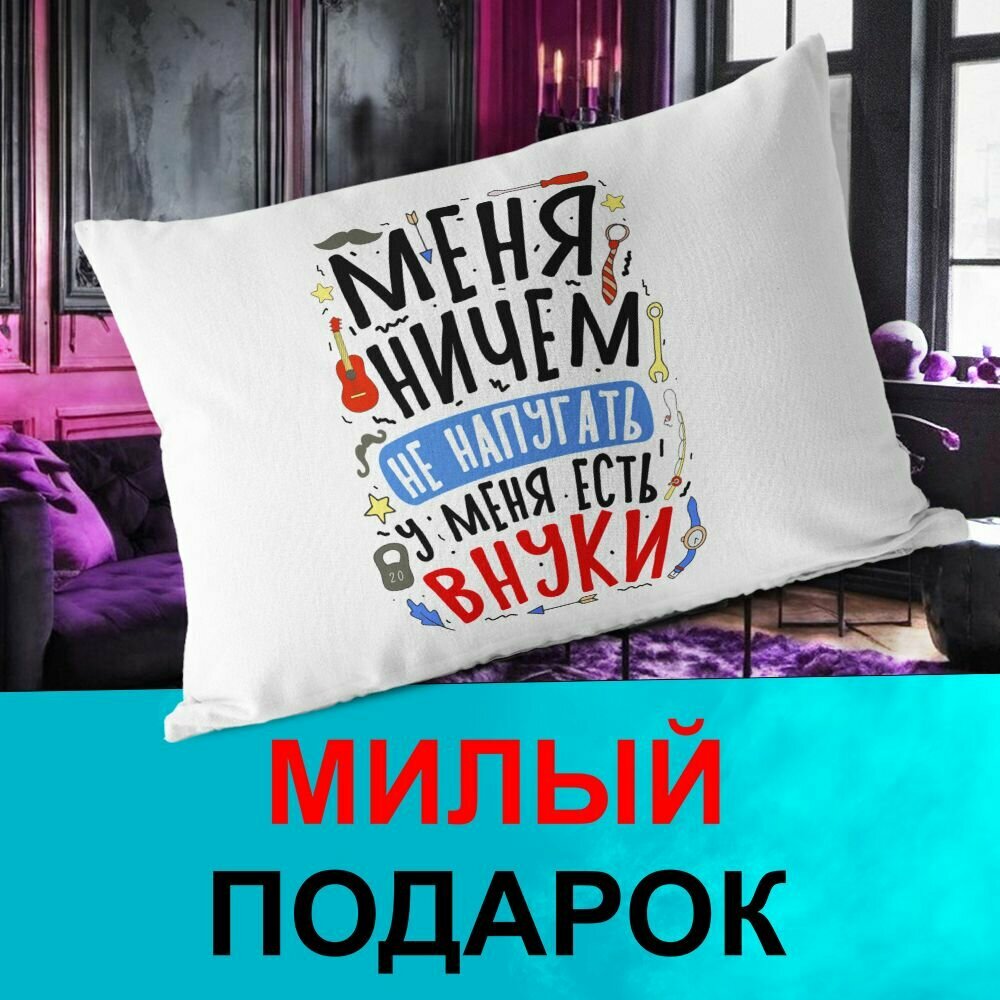 10 цен на Декоративная подушка PDS Studio: Меня ничем не напугать, у меня есть внуки. Галстук, гиря, гитара
