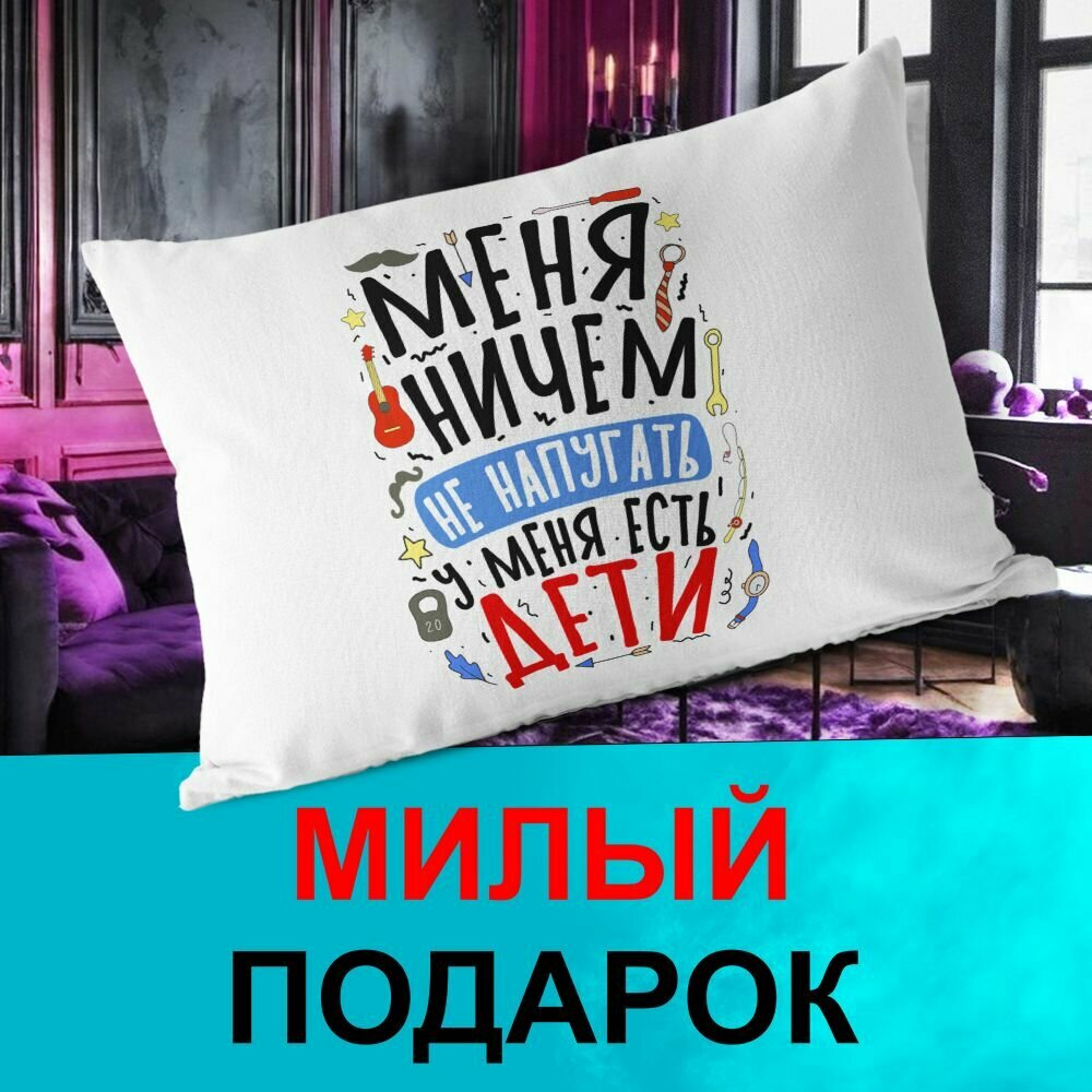 Декоративная подушка PDS Studio: Меня ничем не напугать, у меня есть дети. Галстук, гиря, гитара информация: