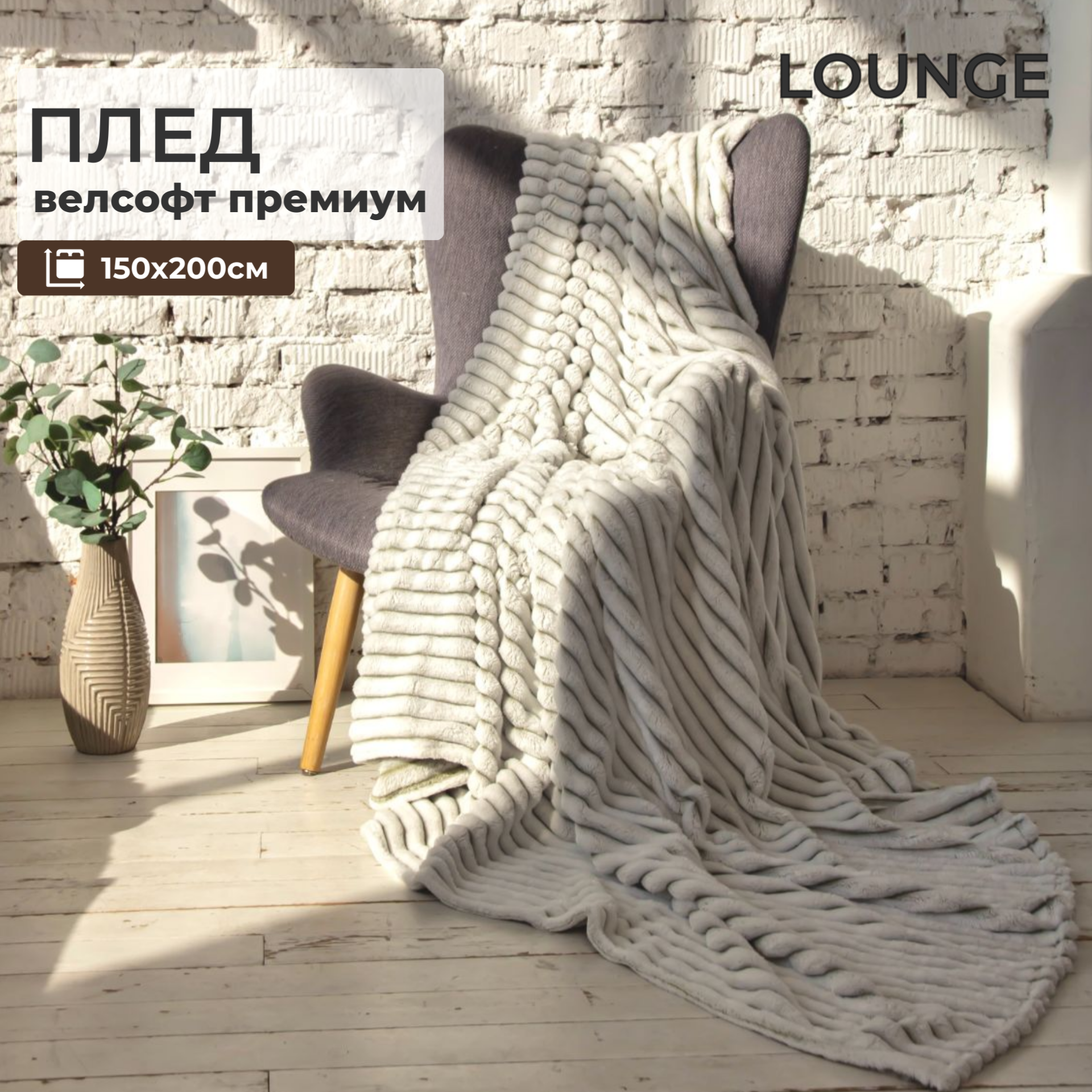 Плед (покрывало) пушистый на кровать, диван, кресло велсофт LOUNGE, 1,5-спальное, 150х200 1 500 ₽