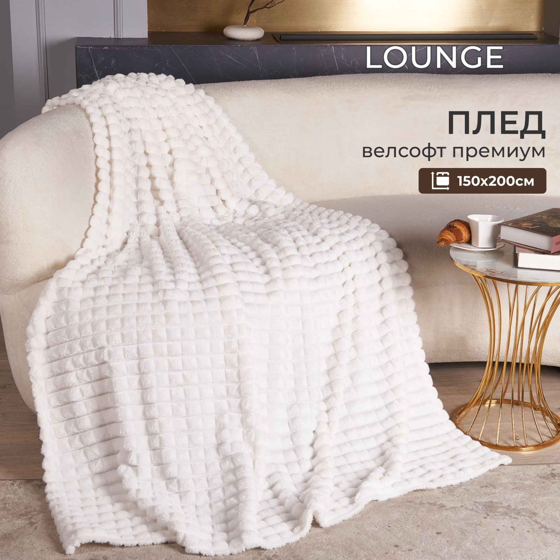 Отзывы на Плед пушистый на кровать, диван, кресло велсофт "Royal White Cube" LOUNGE/ покрывало 1,5-спальное, 150х200