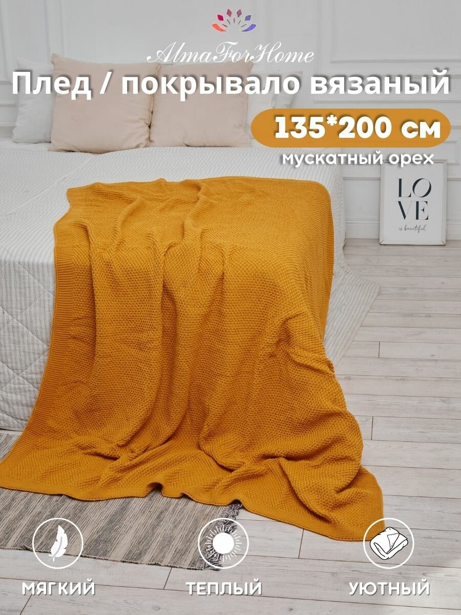 Плед-покрывало вязаный AlmaForHome SunnySmile горчица 135х200см. 2 399 ₽