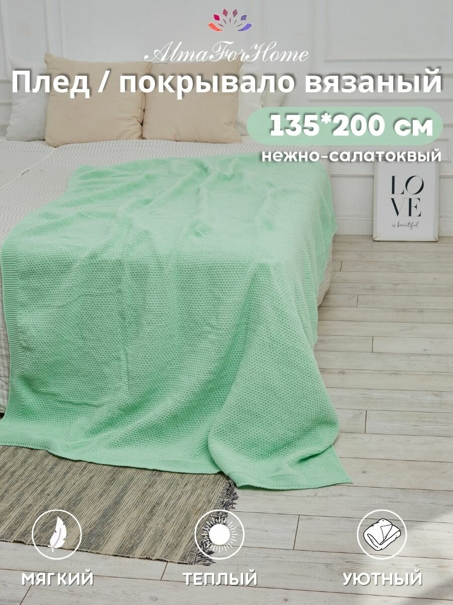 Плед-покрывало вязаный AlmaForHome SunnySmile светло-салатовый 135х200см. информация: