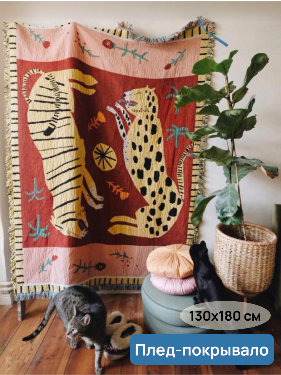 Отзывы на Плед-покрывало для пляжа, кресла или дивана, пикника, тканный с тиграми 130 х 160 см