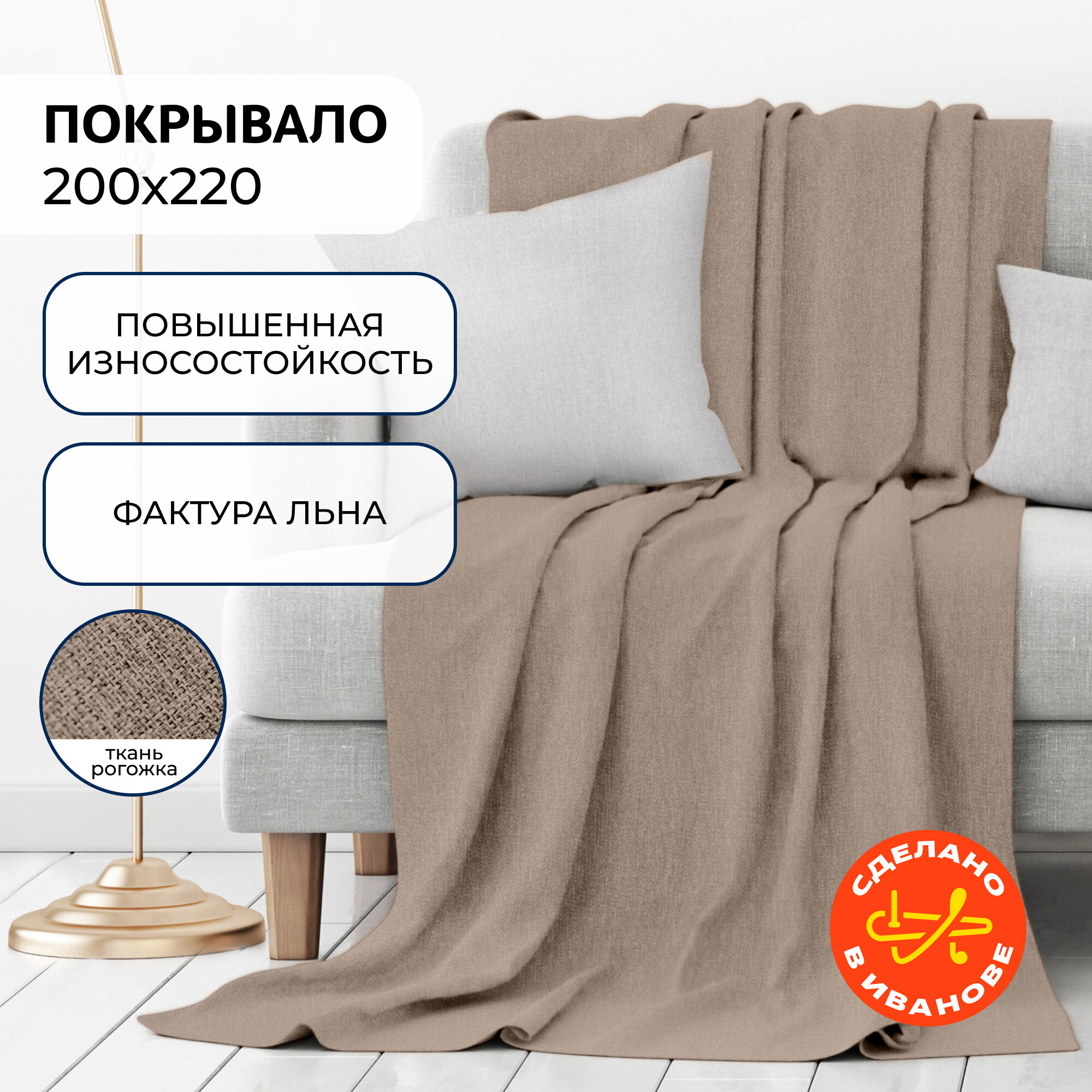 Покрывало Волшебная Ночь Покрывало рогожка 200х220 светло-бежевый 774520 1 750 ₽