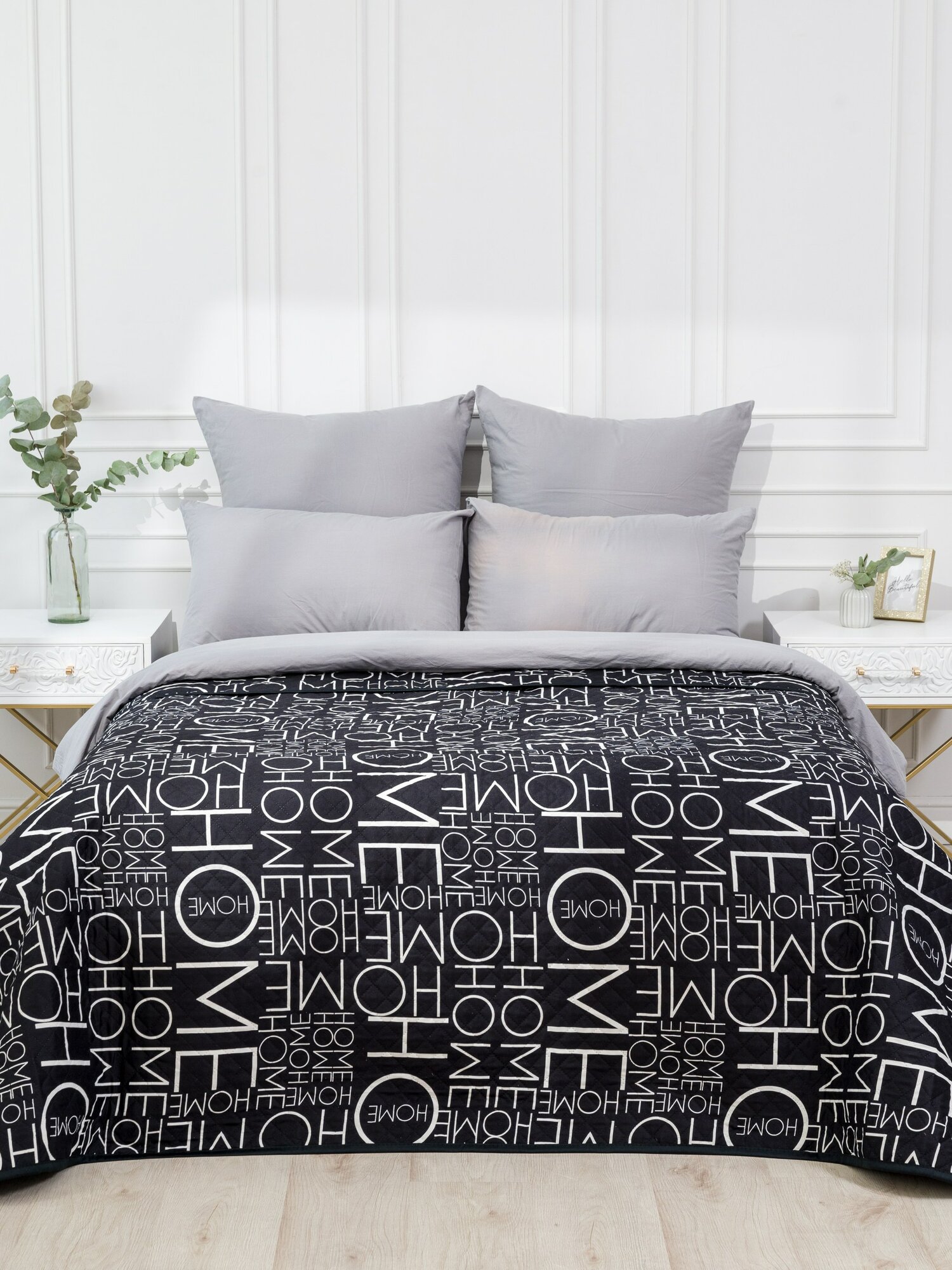 Покрывало на кровать 240х260 см с наволочками велюр MAXI ADRIA SMOKE