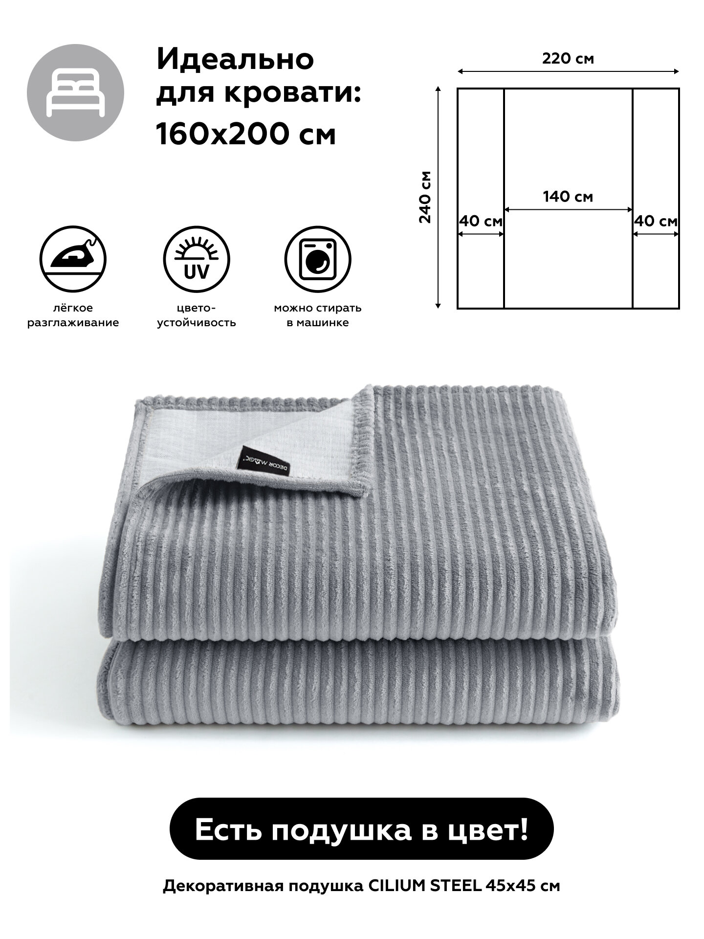 Покрывало DUO CILIUM STEEL 220x240 см информация:
