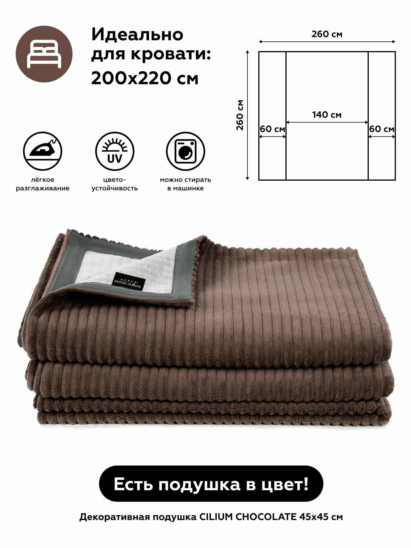Покрывало TRIO CILIUM CHOCOLATE 260x260 см информация: