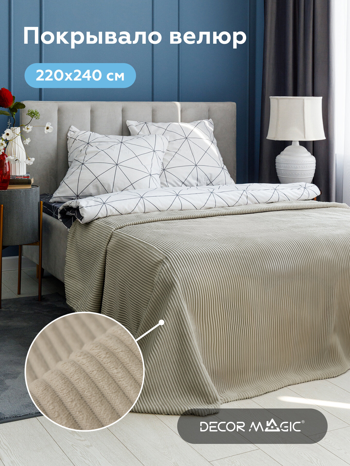 Покрывало на кровать 240х260 см с наволочками велюр MAXI ADRIA SMOKE