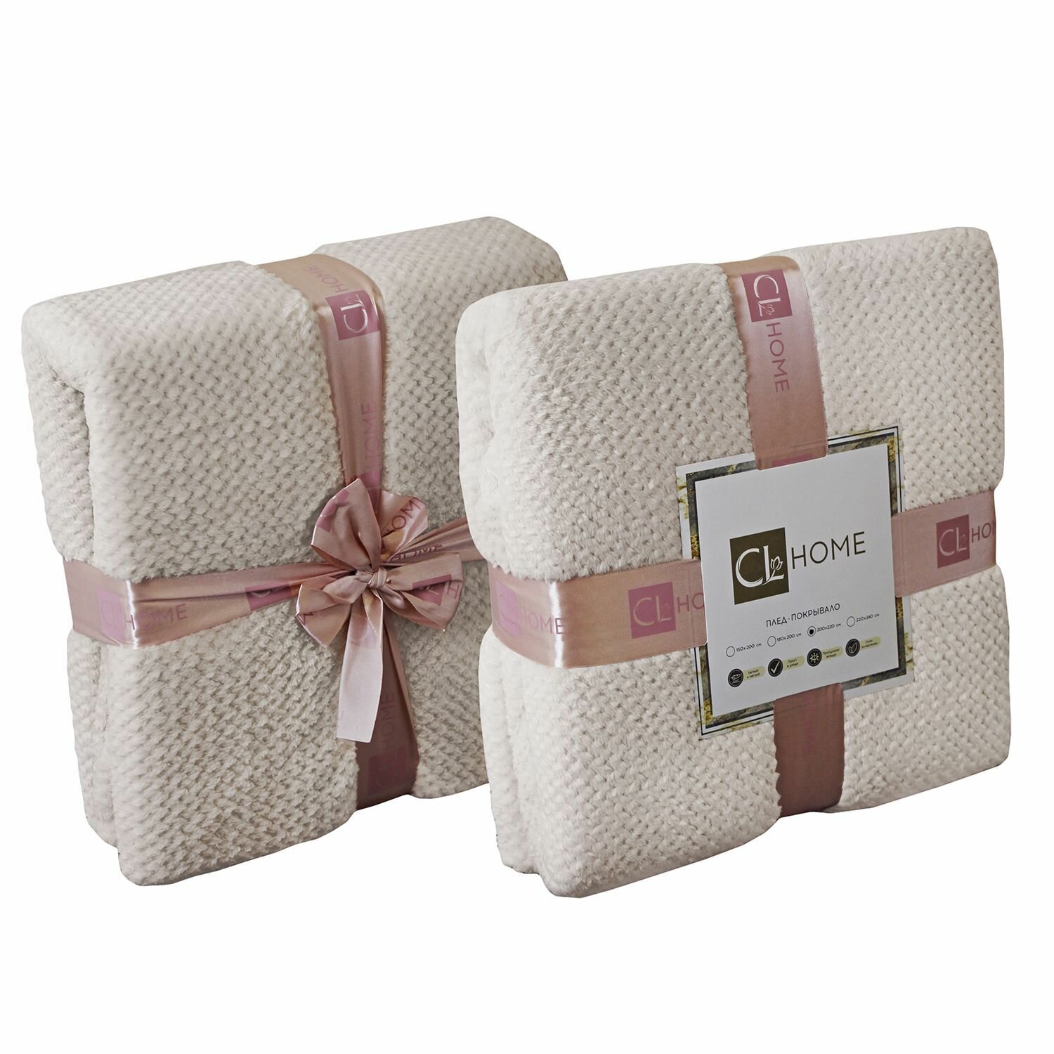 Отзывы на Плед 200х220 однотонный кремовый Cleo PINOLI покрывало на кровать и диван в атласной ленте велсофт