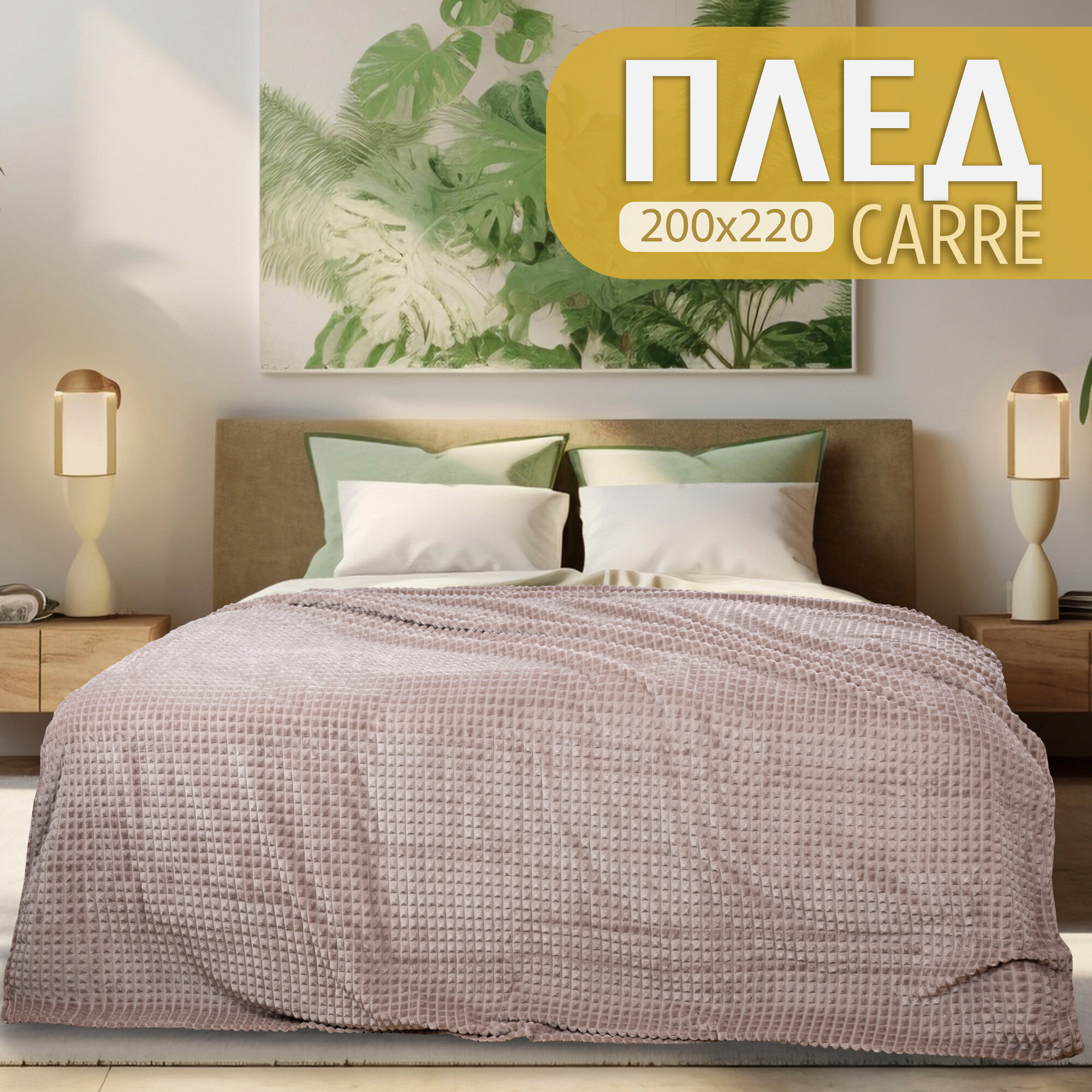 Отзывы на Плед 200х220 евро Cleo CARRE велсофт пушистый пыльная роза, велсофт