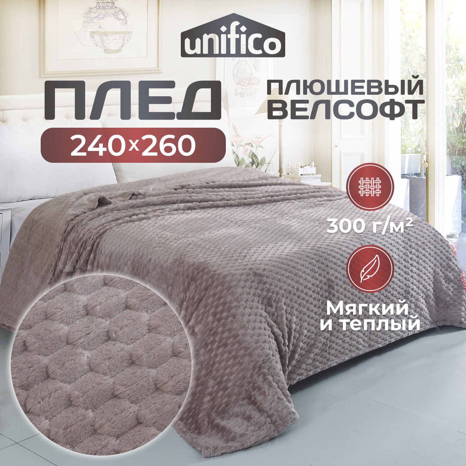 Плед Unifico "Elba Grey", велсофт, 100 % полиэстер, плотность 300г/м², 240x260 см 2 260 ₽