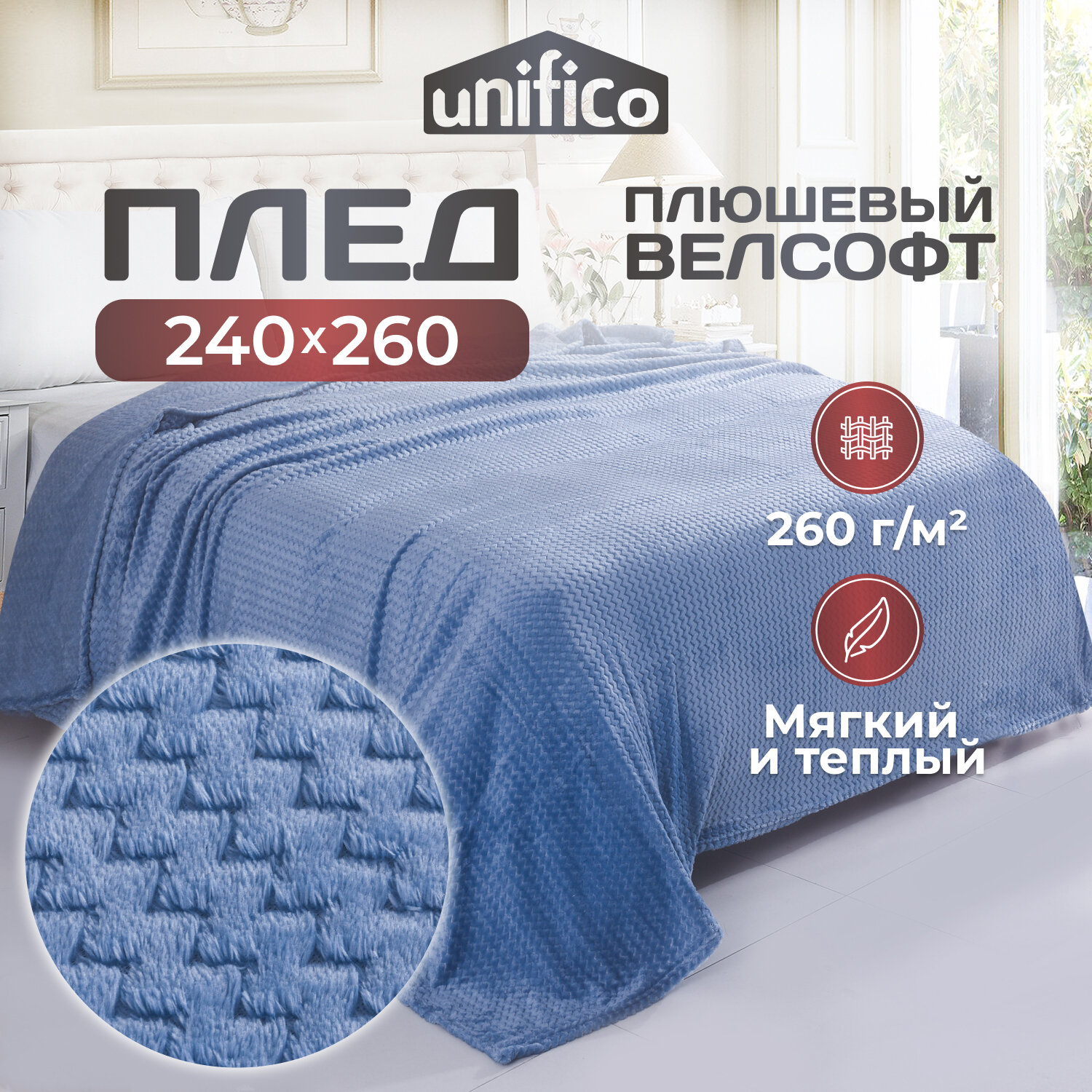 Плед Unifico "Samui Blue", велсофт, 240 см x 260 см, 100% полиэстер, плотность 290 г/м² 1 876 ₽