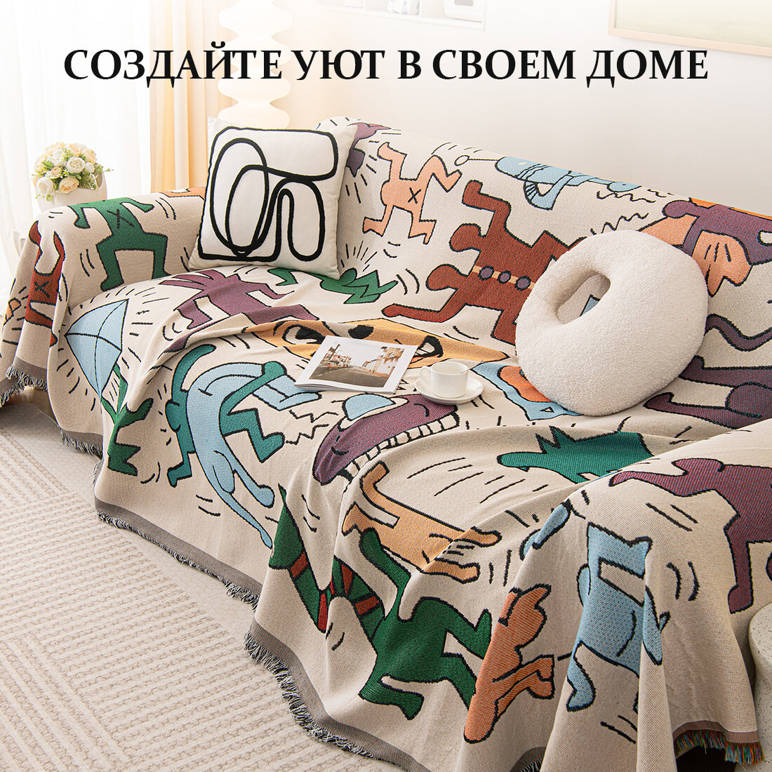 Отзывы на Покрывало на диван, плед для пикника, пляжное покрывало, FAFYсовременное покрывало для дивана в стиле INS с сграффити, размер 180X340CM
