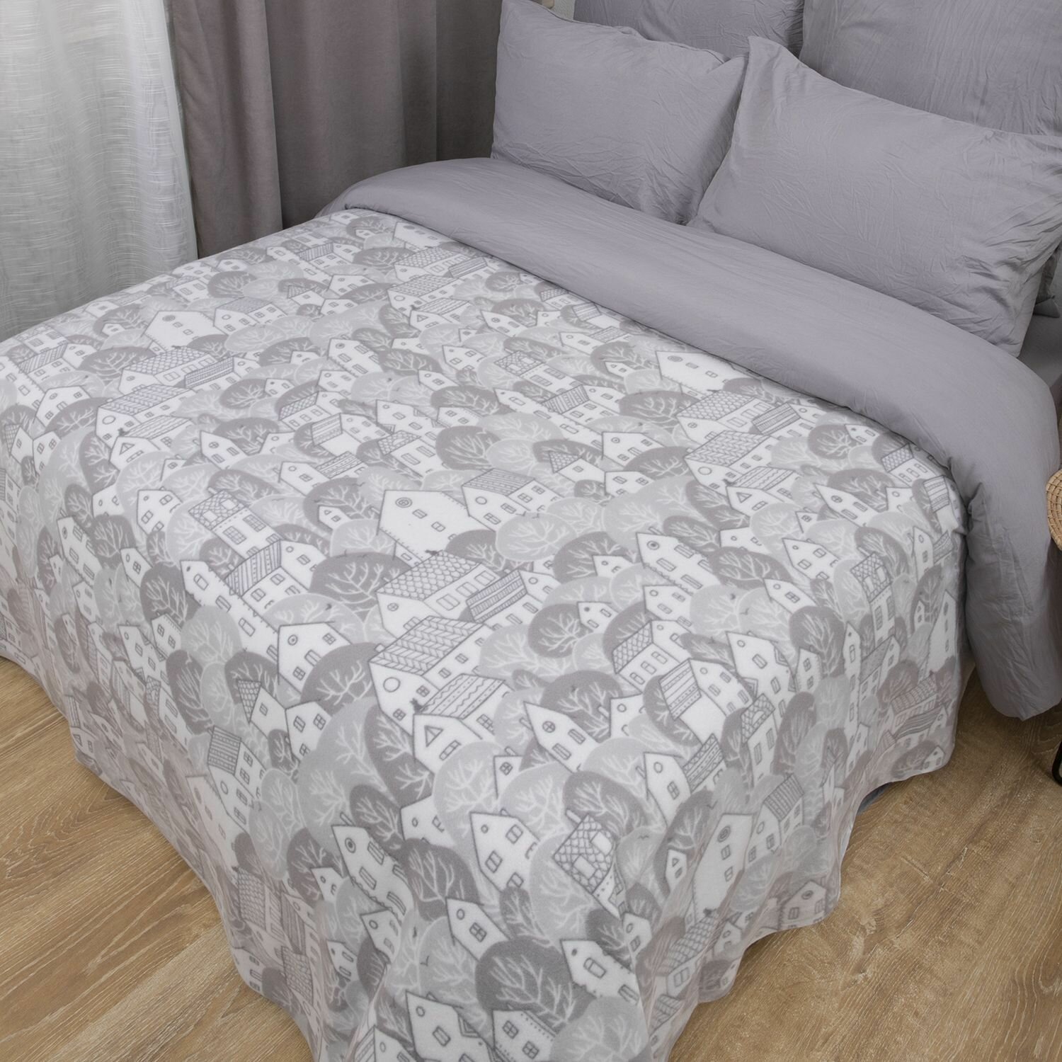 Плед 150х200 флисовый на кровать мягкий, Tessolo Home, Домики серый
