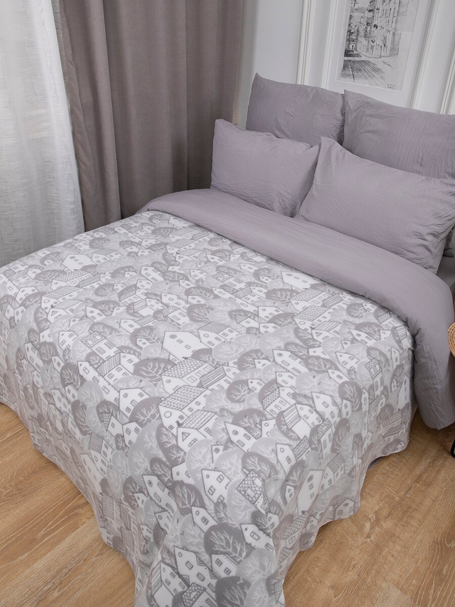 Отзывы на Плед 150х200 флисовый на кровать мягкий, Tessolo Home, Домики серый