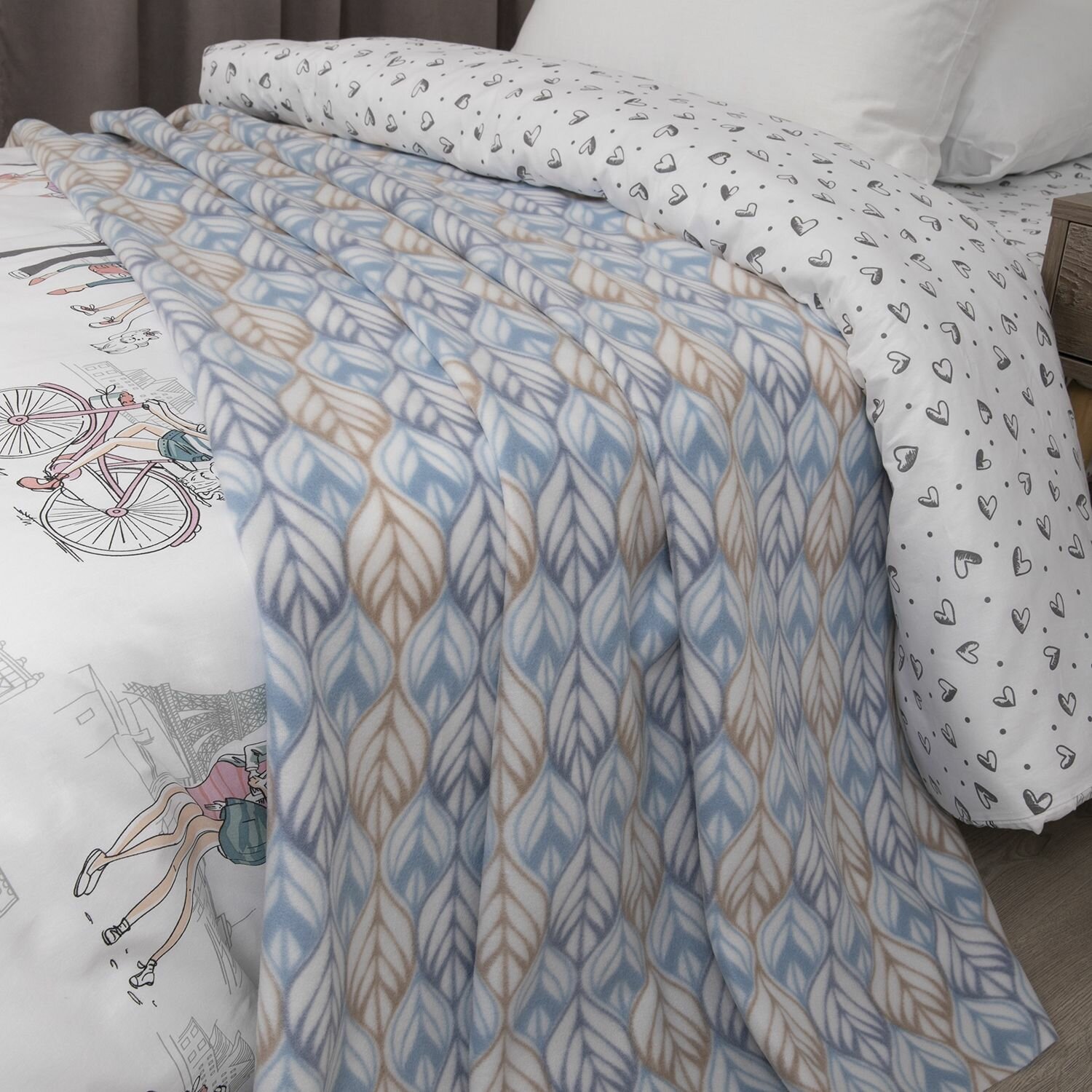 Плед 150х200 флисовый на кровать мягкий, Tessolo Home, "Леопард" голубой