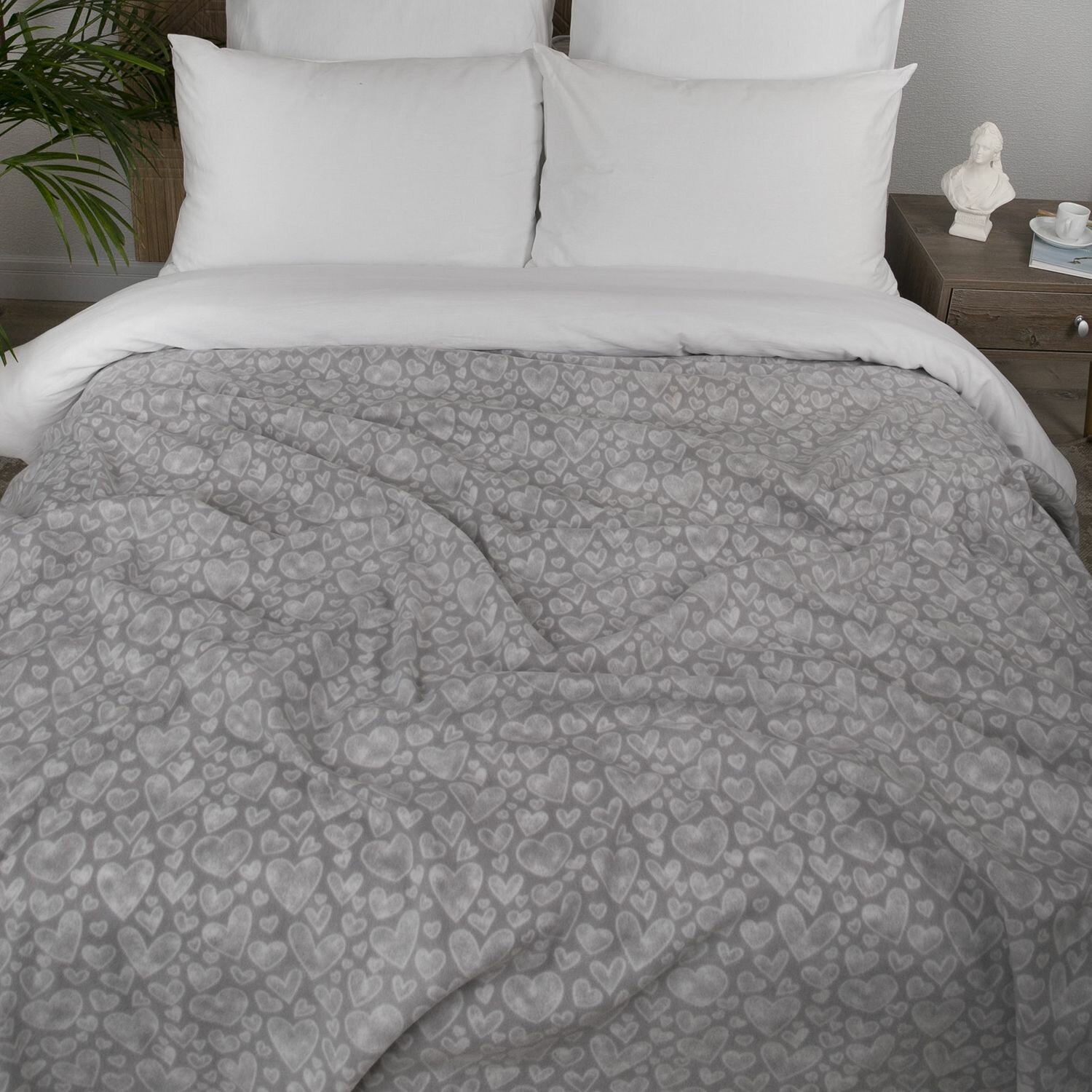 Плед 150х200 флисовый на кровать мягкий, Tessolo Home, Домики серый