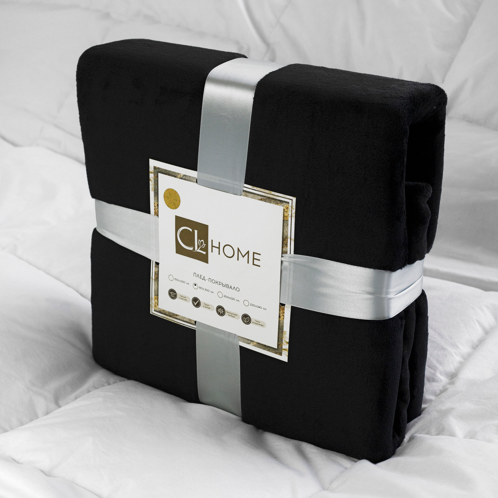 Плед 200х220 однотонный черный Cleo Virginia покрывало на кровать и диван в атласной ленте велсофт информация: