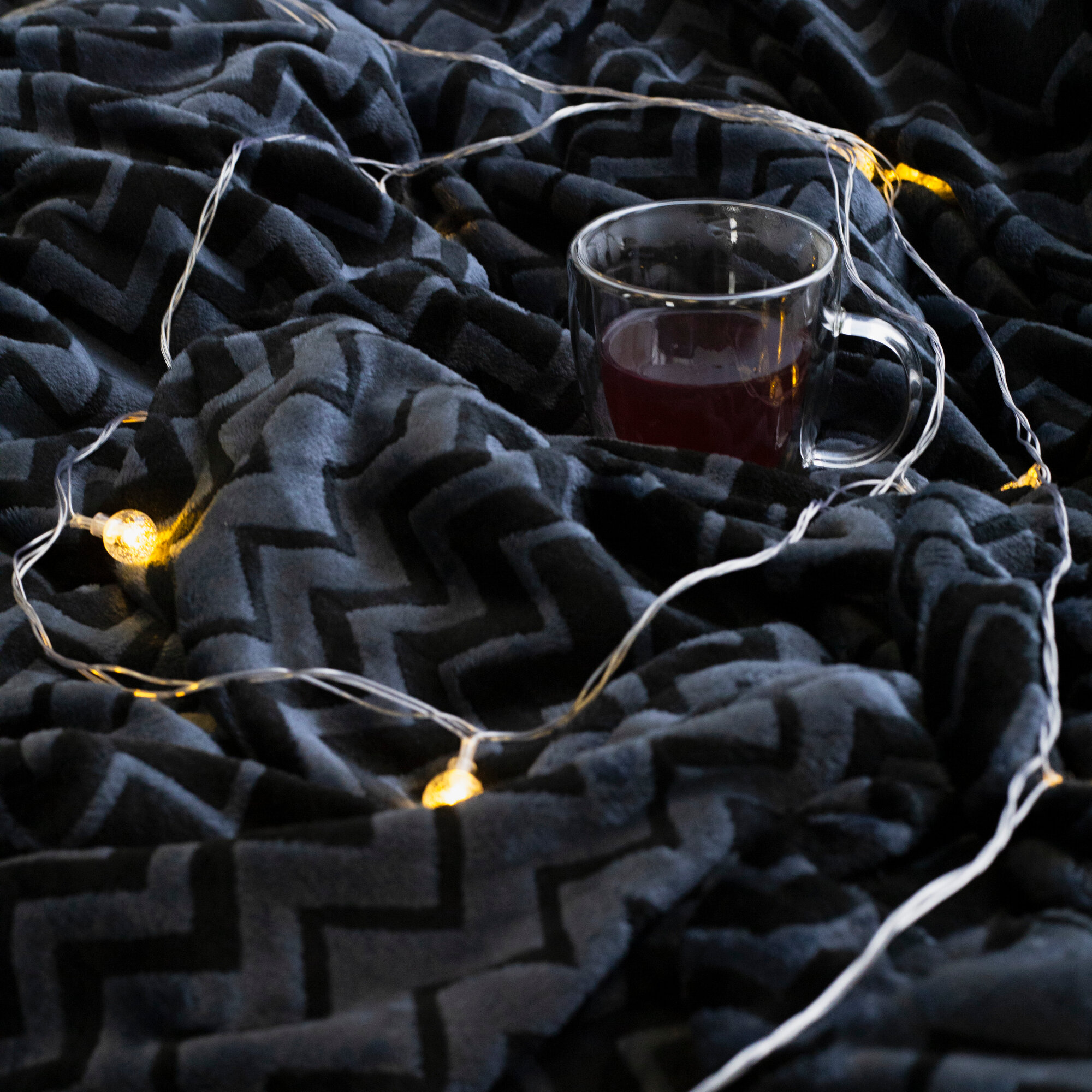 Отзывы на Плед 180х200 пушистый двуспальный велсофт Cleo Volna зигзаг черно-синий
