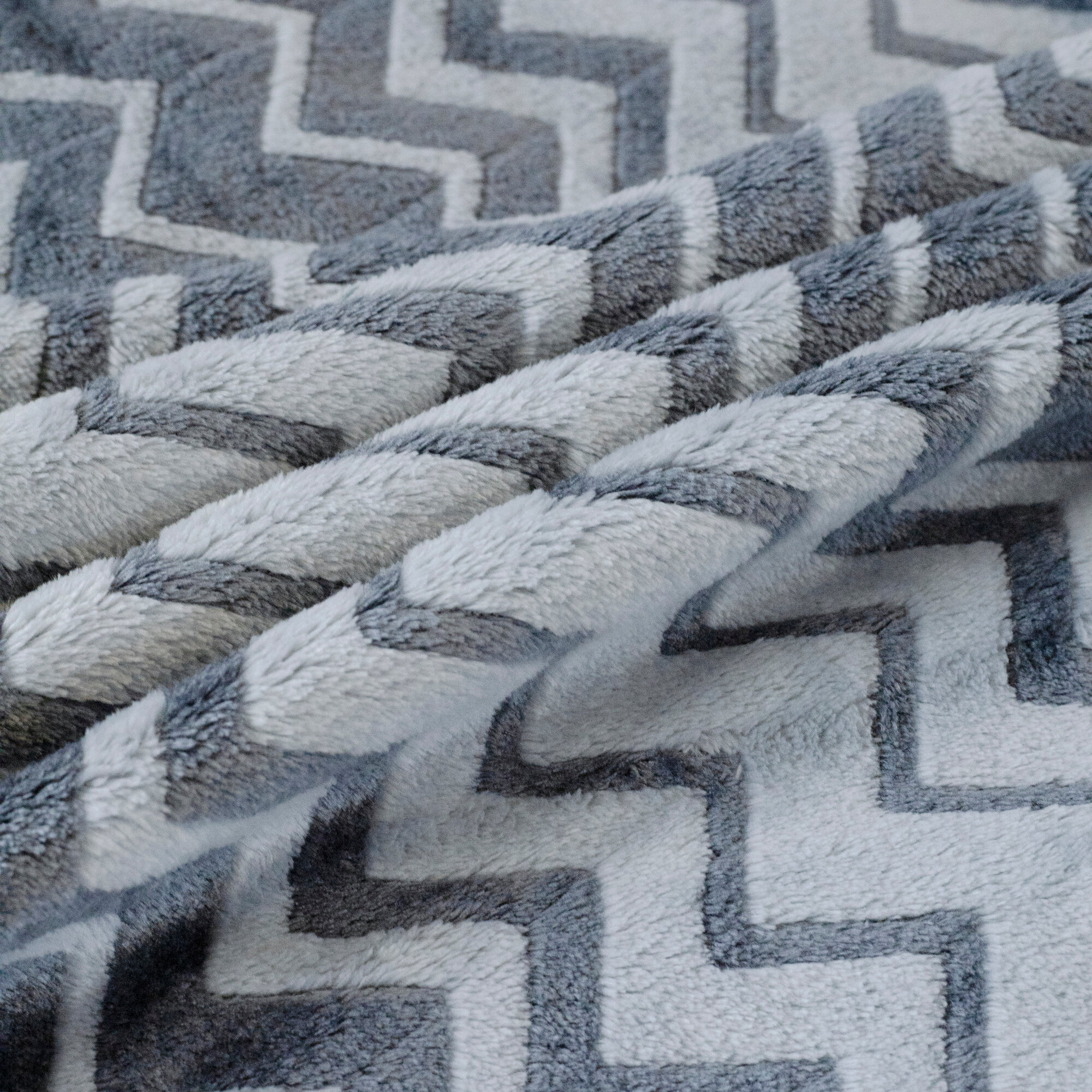 Отзывы на Плед 180х200 пушистый двуспальный велсофт Cleo Volna зигзаг серый