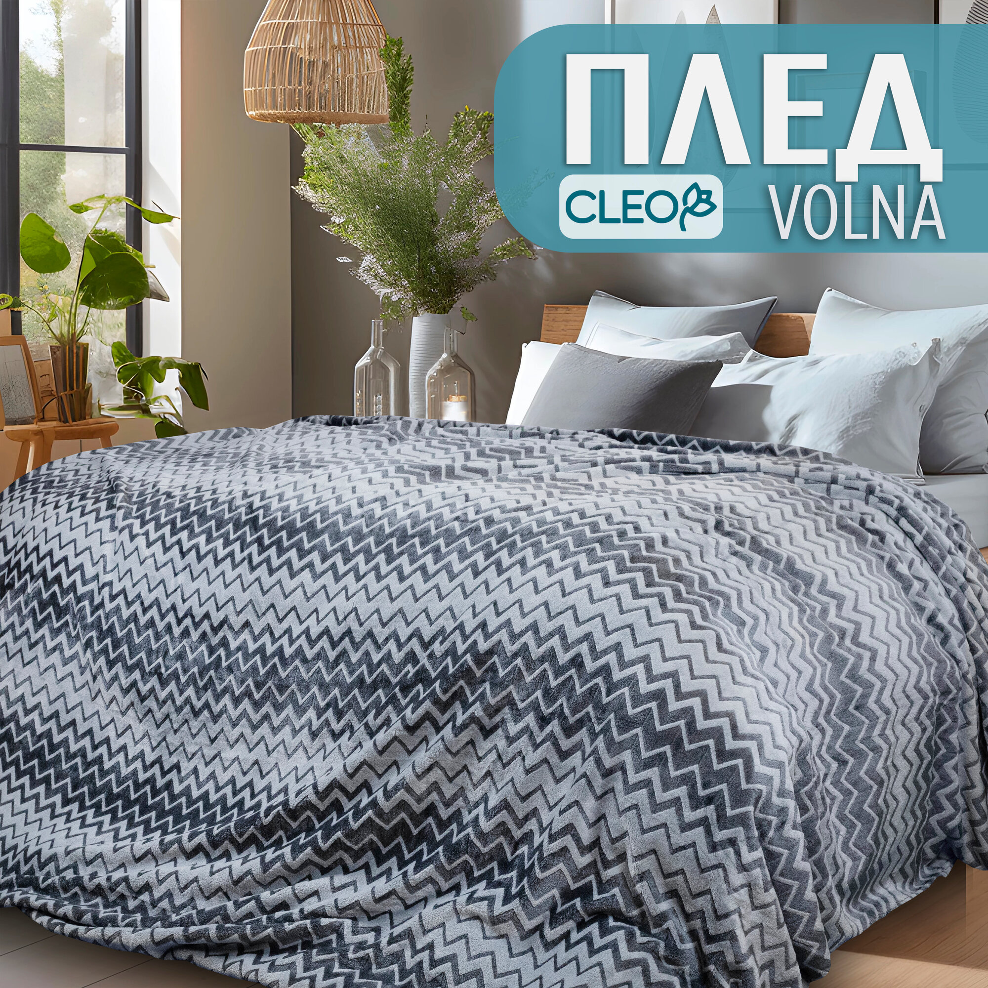 Плед 180х200 пушистый двуспальный велсофт Cleo Volna зигзаг серый 1 324 ₽