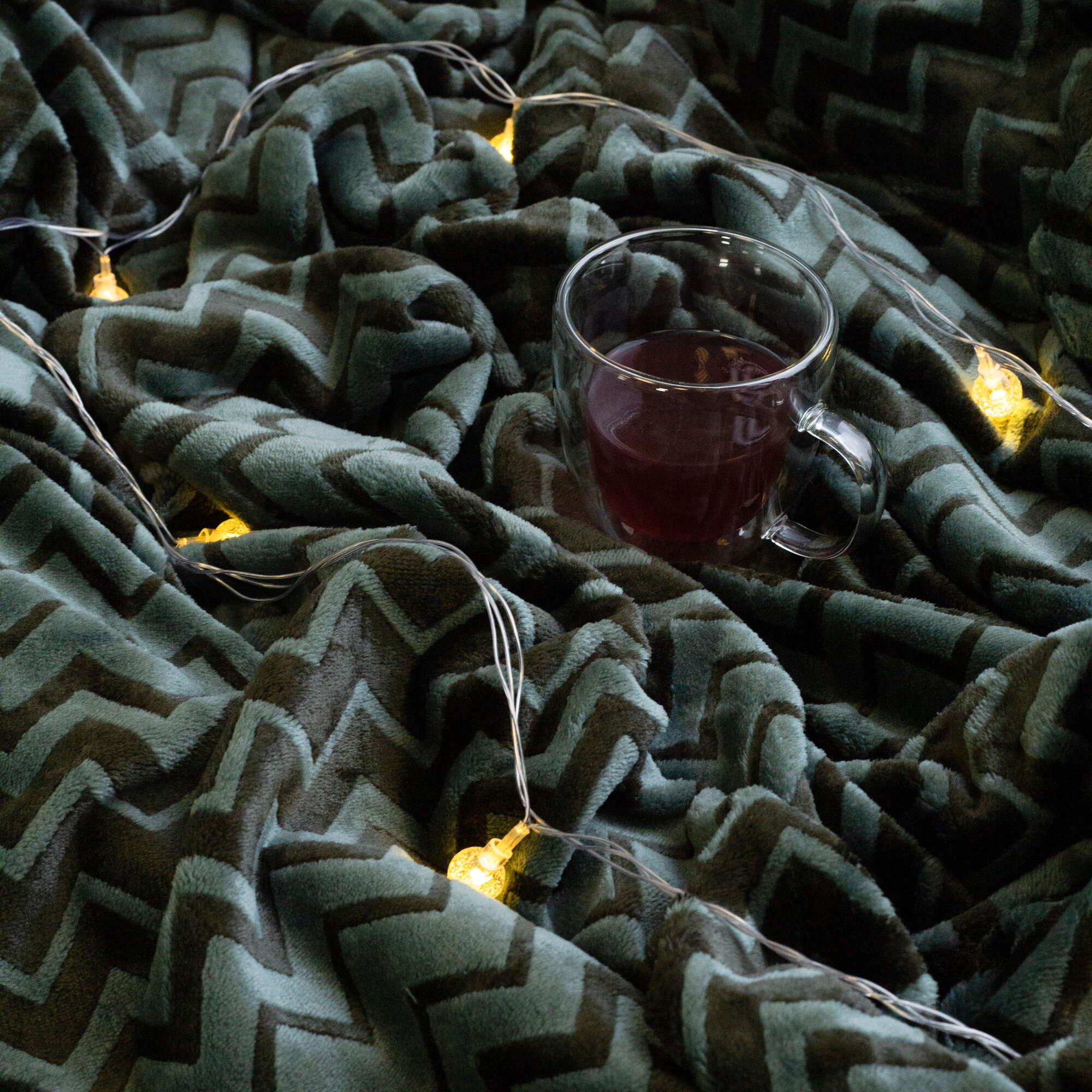 Отзывы на Плед 150х200 пушистый полуторный велсофт Cleo Volna зигзаг зеленый