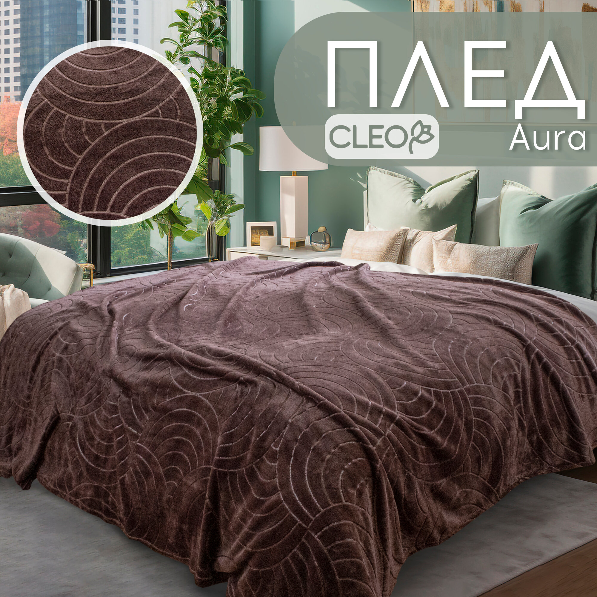 10 цен на Плед 200х220 однотонный коричневый Cleo AURA покрывало на кровать и диван в атласной ленте велсофт