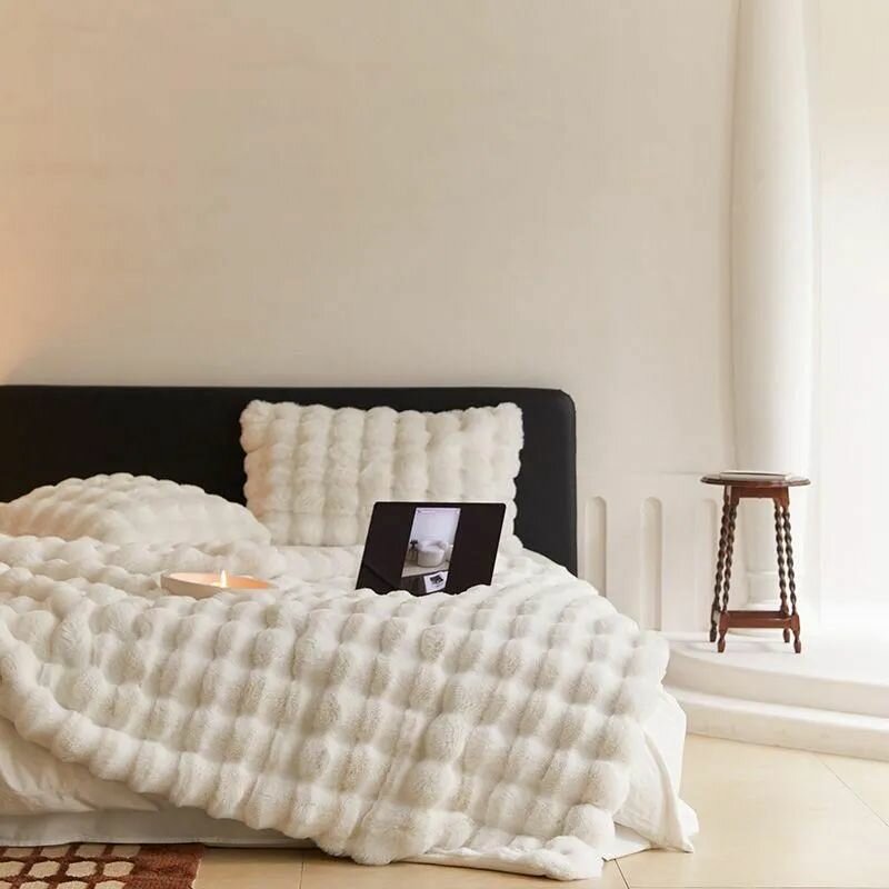 Покрывало на кровать 160х210, искусственный мех, Mency, белое 6 177 ₽