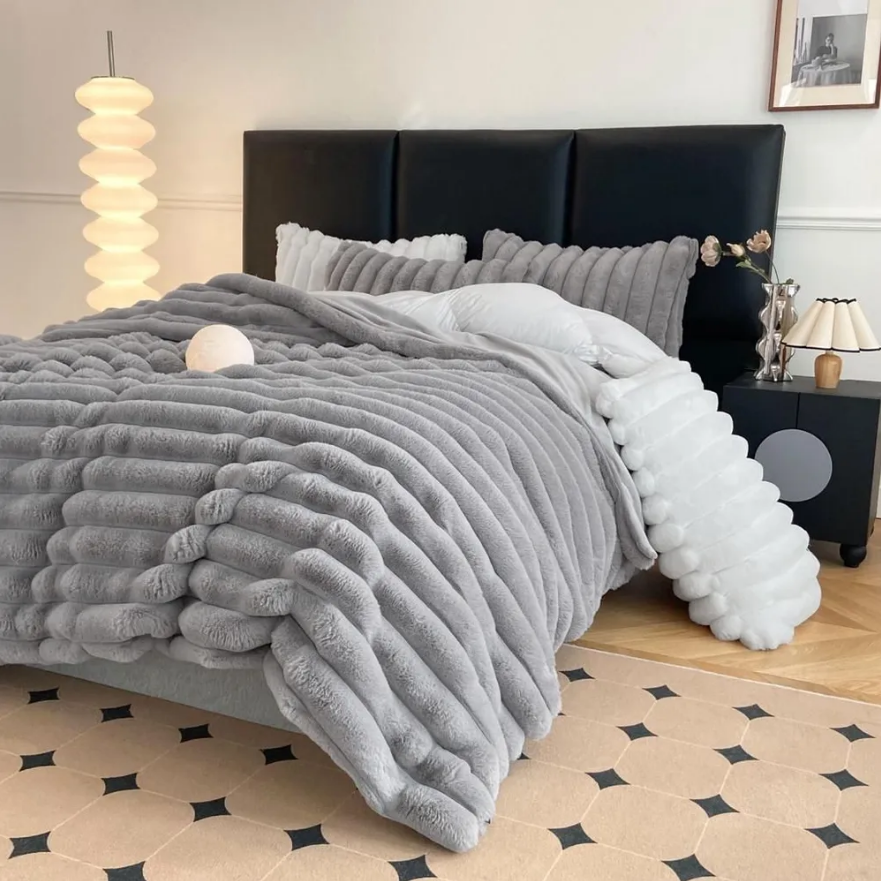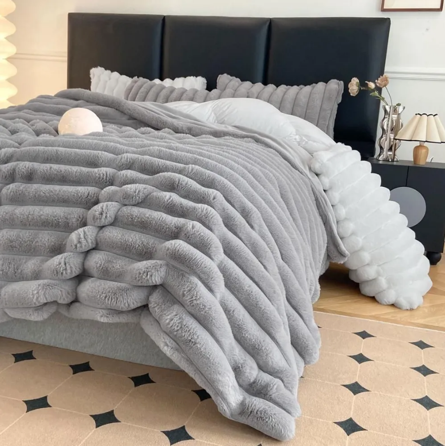 10 цен на Покрывало на кровать, искусственный мех, Mency, серый