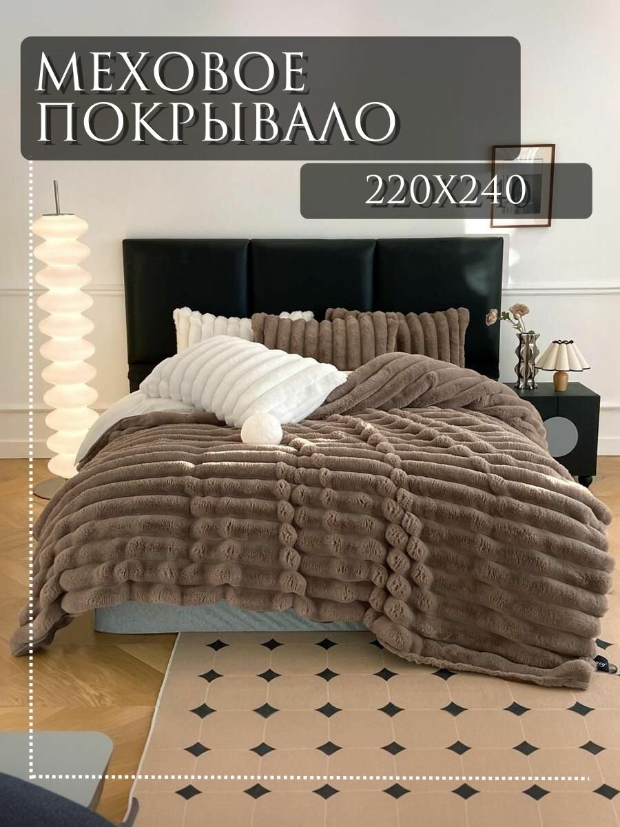 Покрывало Mency, 220 см x 240 см, искусственный мех, коричневый 6 897 ₽