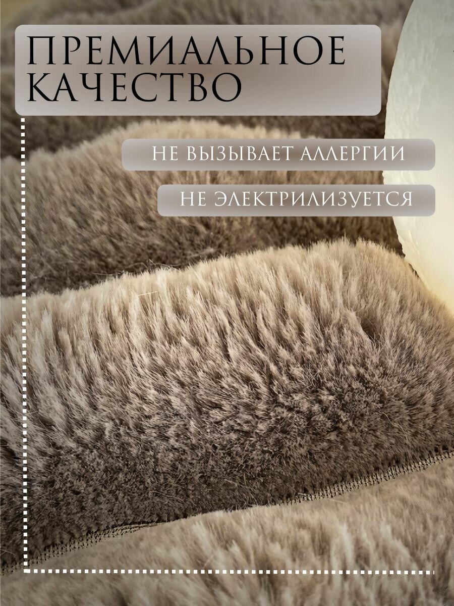 Отзывы на Покрывало на кровать 220х240, искусственный мех, Mency, полосатое, коричневое