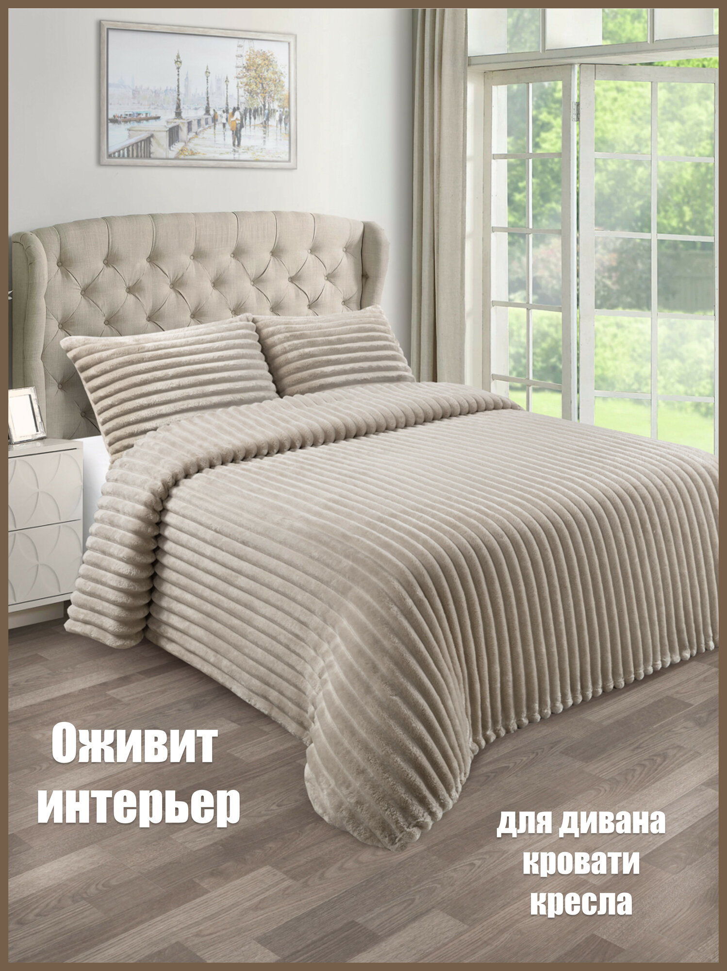 10 цен на Пушистый плед-покрывало 200x220 для дивана, бежевый, велсофт
