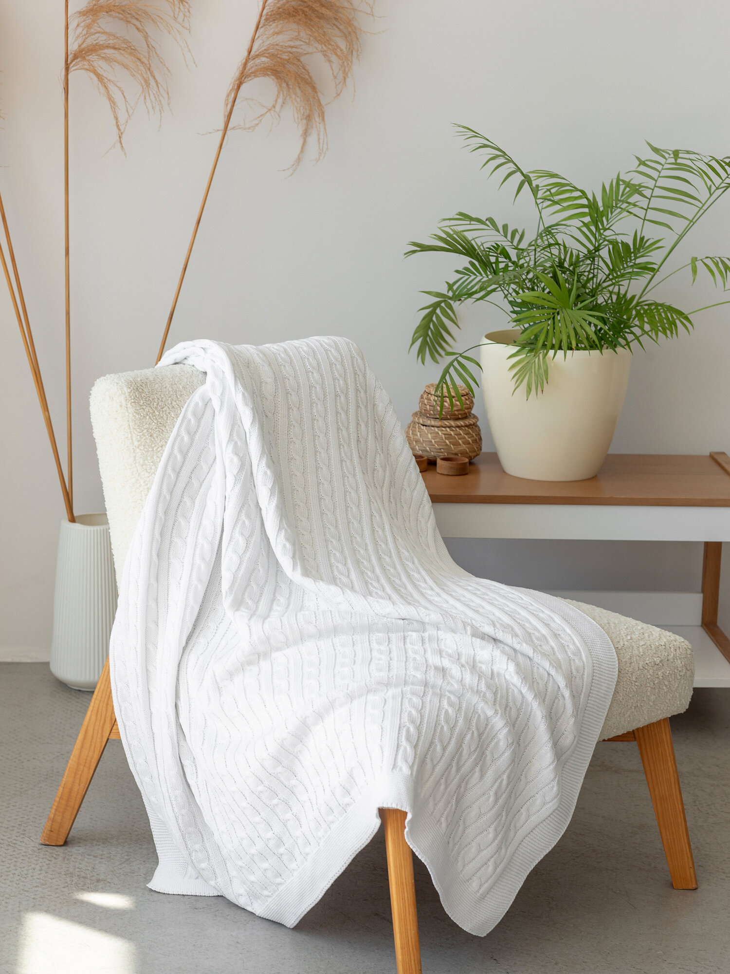 Плед, ANNA COLLECTON, одеяло, покрывало, для пикника, на кровать, на диван из натурального хлопка, белый, 110х160 см информация: