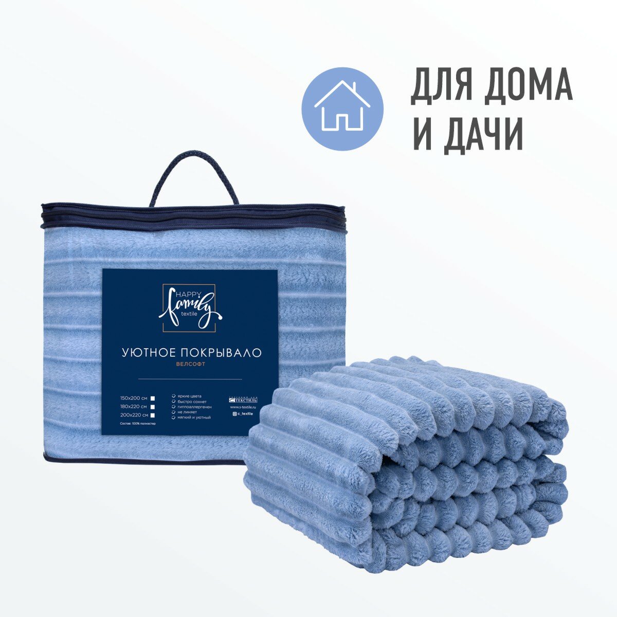 Отзывы на Плед евро 200х220 см, покрывало Happy Family велсофт Волна голубой/мягкий, теплый плед на кровать/кресло/подарок/ для дома/дачи/пикника / NEW 2024/