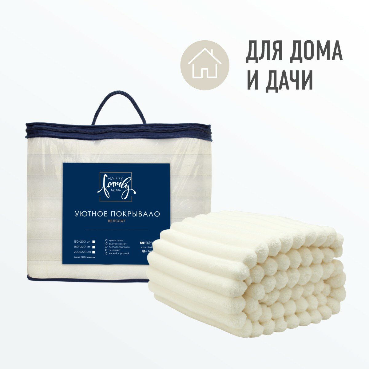 Плед Happy Family 150х200 см, плед - покрывало 1,5 спальное, плюшевый пушистый ворс велсофт Волна кремовый, мягкий, теплый плед на кровать, кресло, угловой диван, в подарок для дома информация: