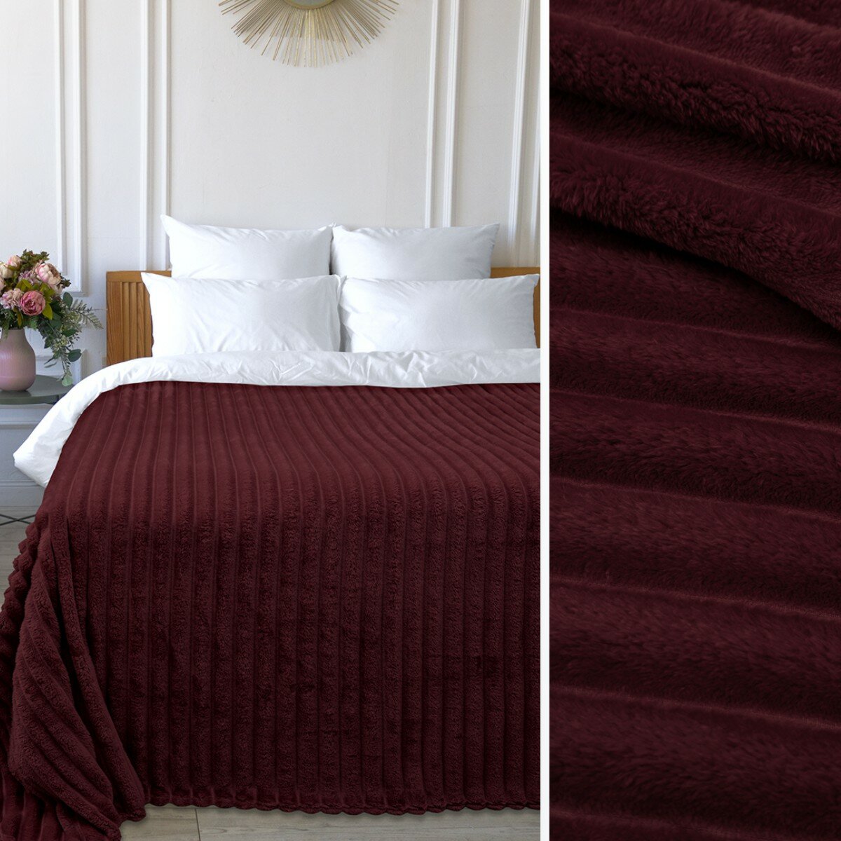 Плед Happy Family 150х200 см, плед - покрывало 1,5 спальное, плюшевый пушистый ворс велсофт Волна бордовый, мягкий, теплый плед на кровать информация: