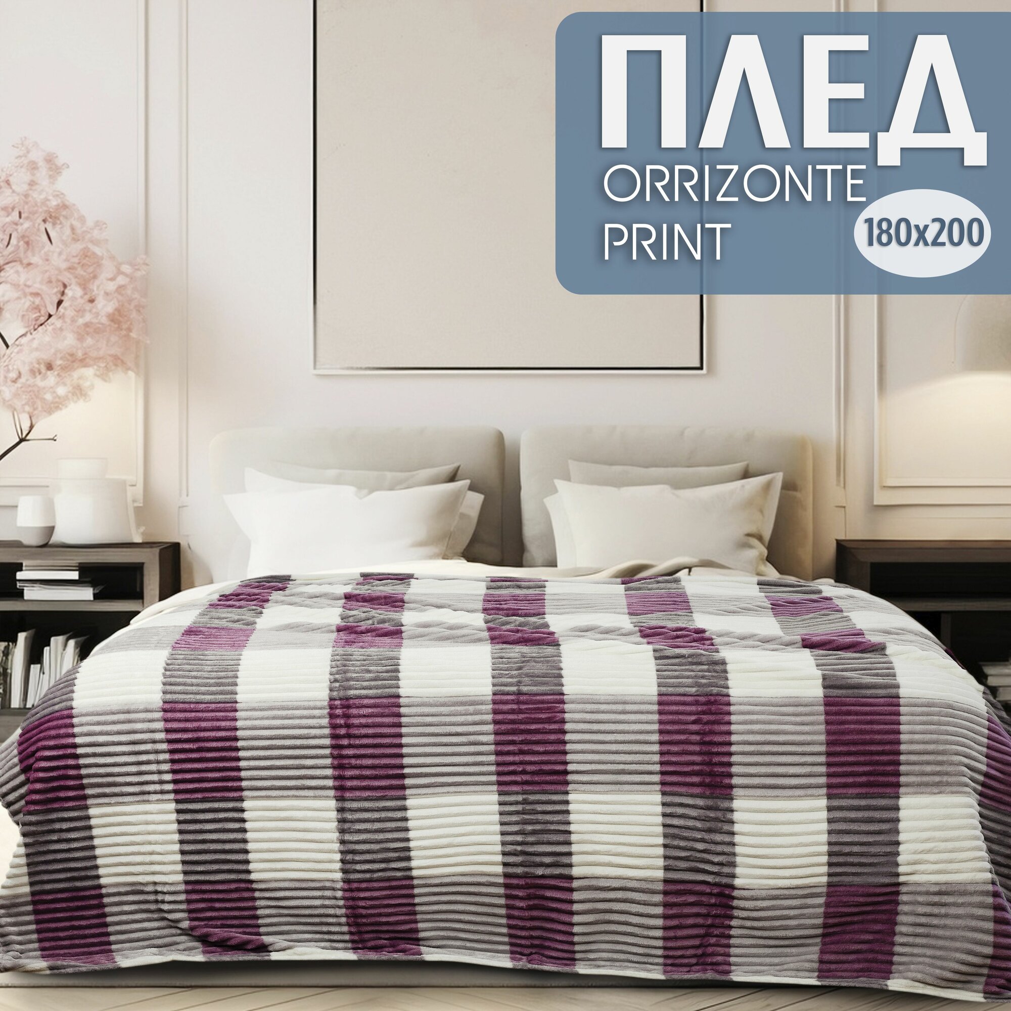 Отзывы на Плед 180х200 фиолетовый в клетку Cleo Orrizonte Print покрывало на кровать и диван пушистый велсофт