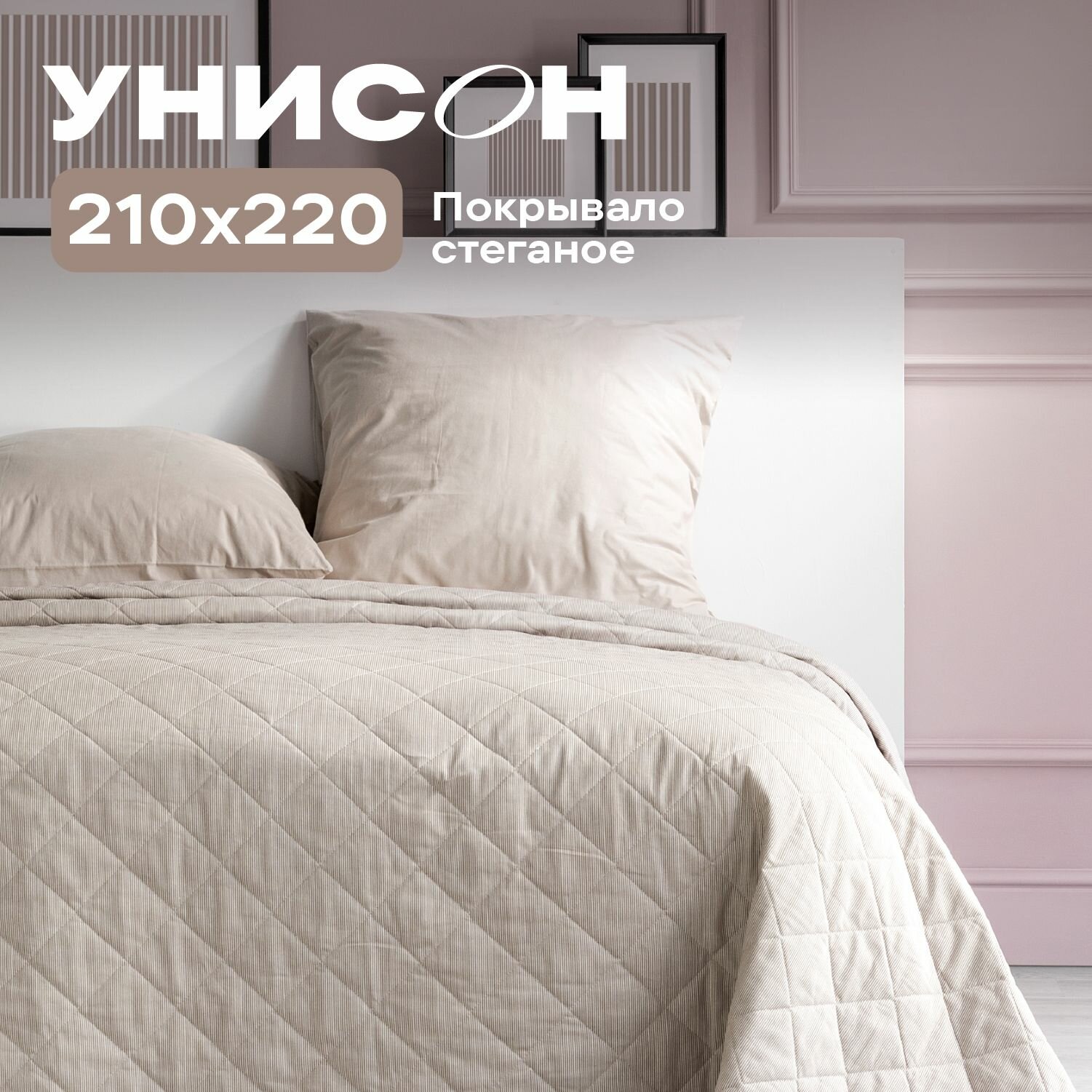 10 цен на Покрывало на кровать 210х220 стеганое хлопок "Унисон" Fresh Line, бежеый