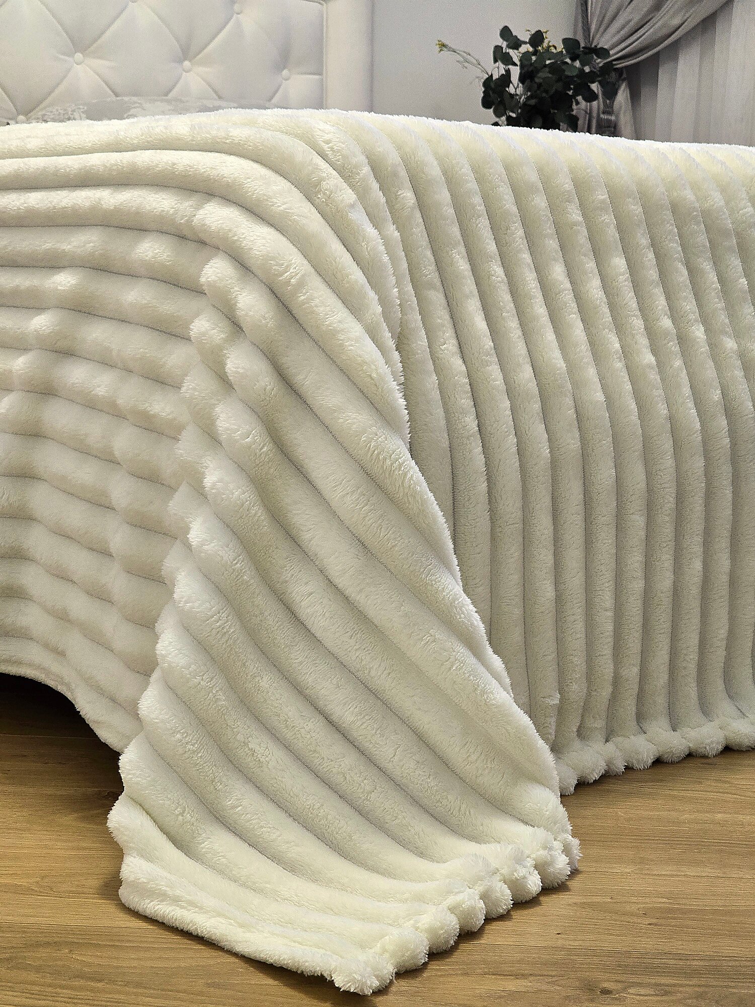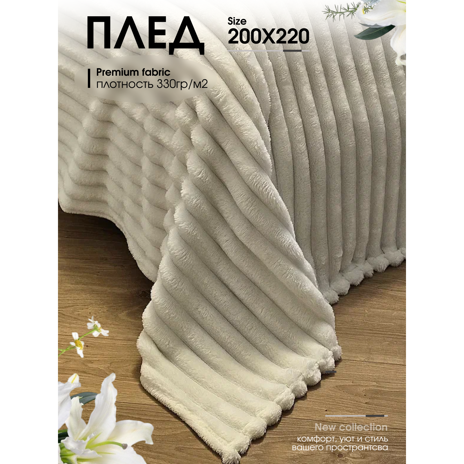 Плед 200x220 Евро пушистый на кровать на диван эстетика уютный красивый теплый молочный информация: