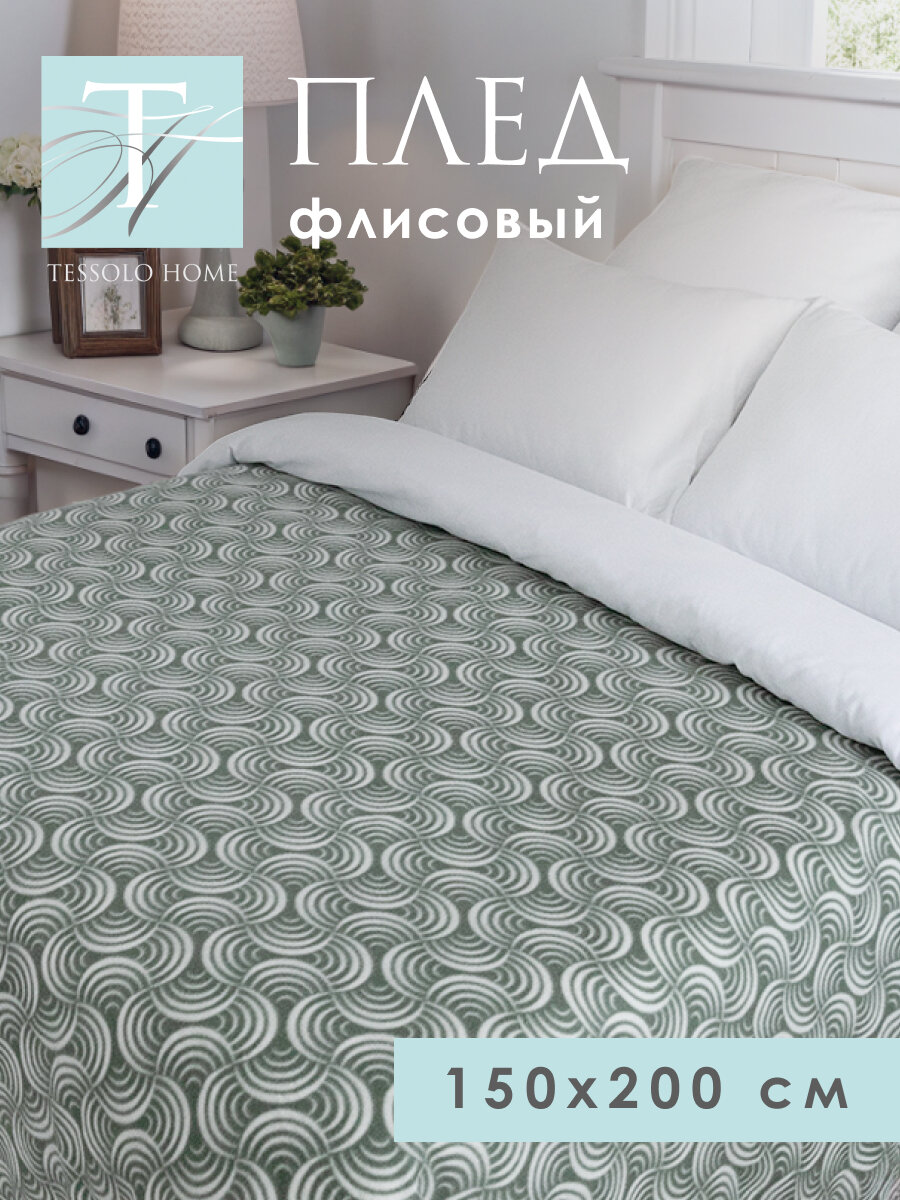10 цен на Плед 150х200 флисовый на кровать мягкий, Tessolo Home, "Ракушки" болотный
