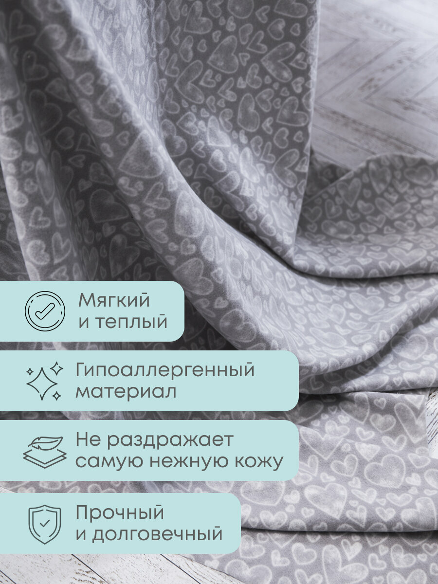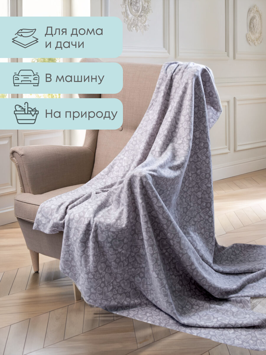 Отзывы на Плед 150х200 флисовый на кровать мягкий, Tessolo Home, "Акварельные сердечки " серый