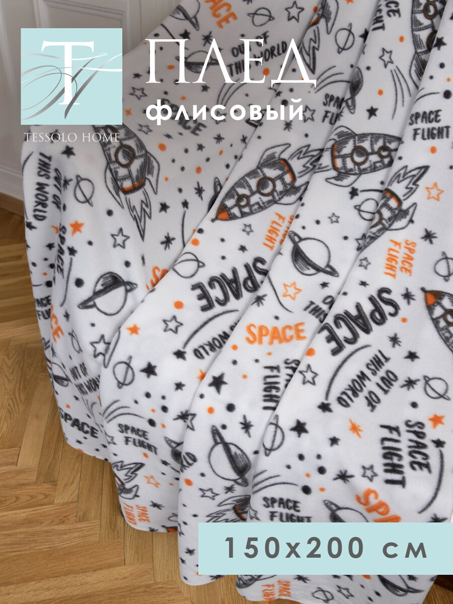 Отзывы на Плед 150х200 флисовый детский мягкий, Tessolo Home, "Вселенная" серый