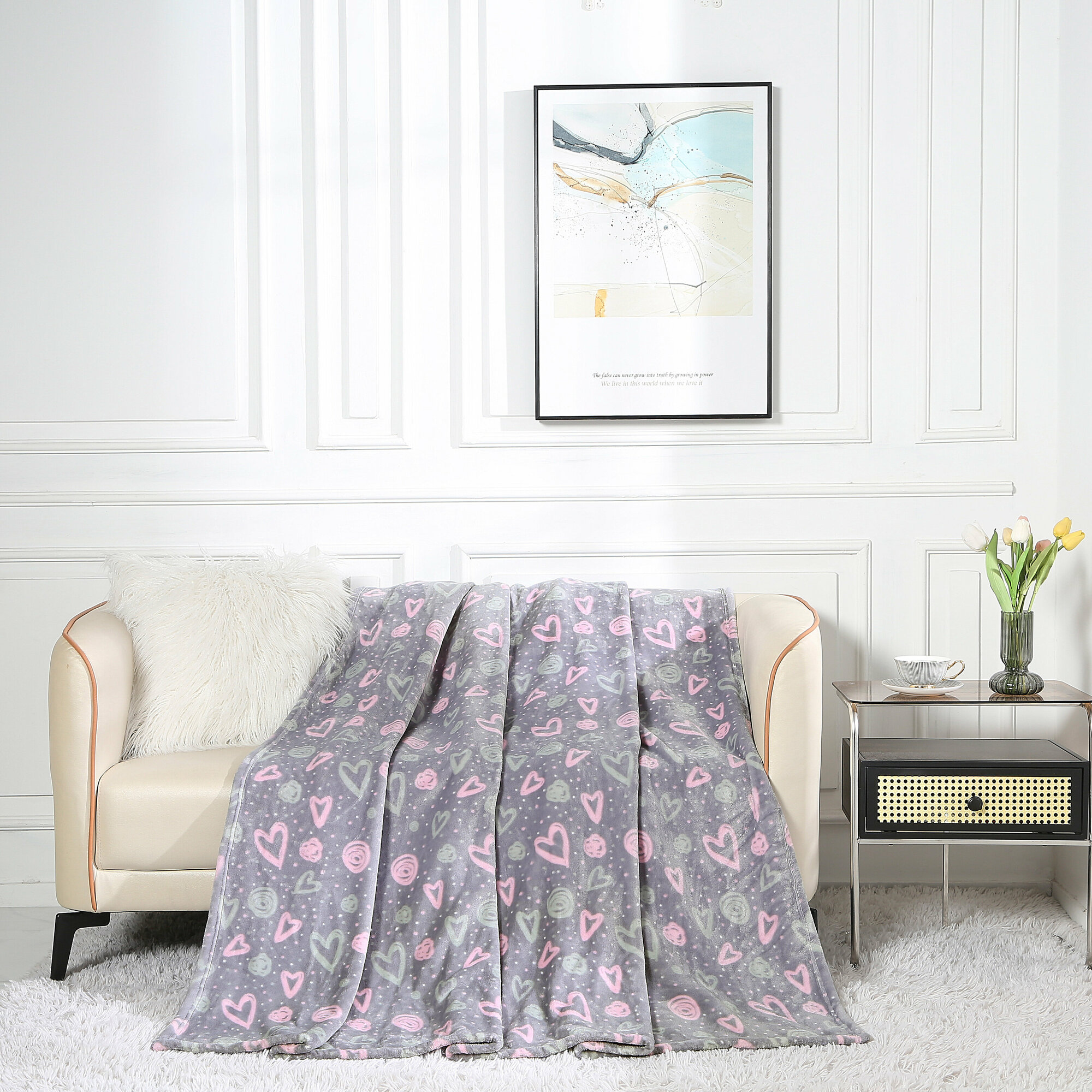 10 цен на Плед 180х200 двуспальный с сердечками, покрывало на кровать и диван Cleo California, пушистый с рисунком, велсофт