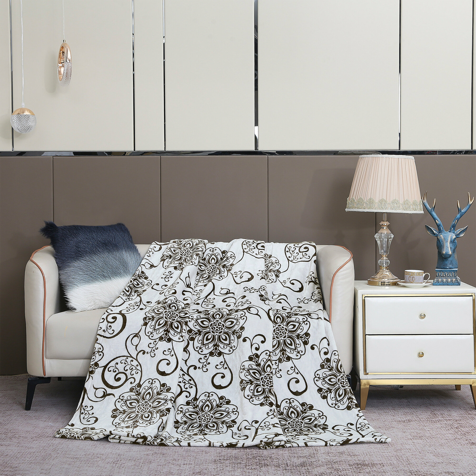 Отзывы на Плед 180х200 двуспальный с вензелями Cleo California, покрывало на кровать и диван, пушистый с рисунком, велсофт