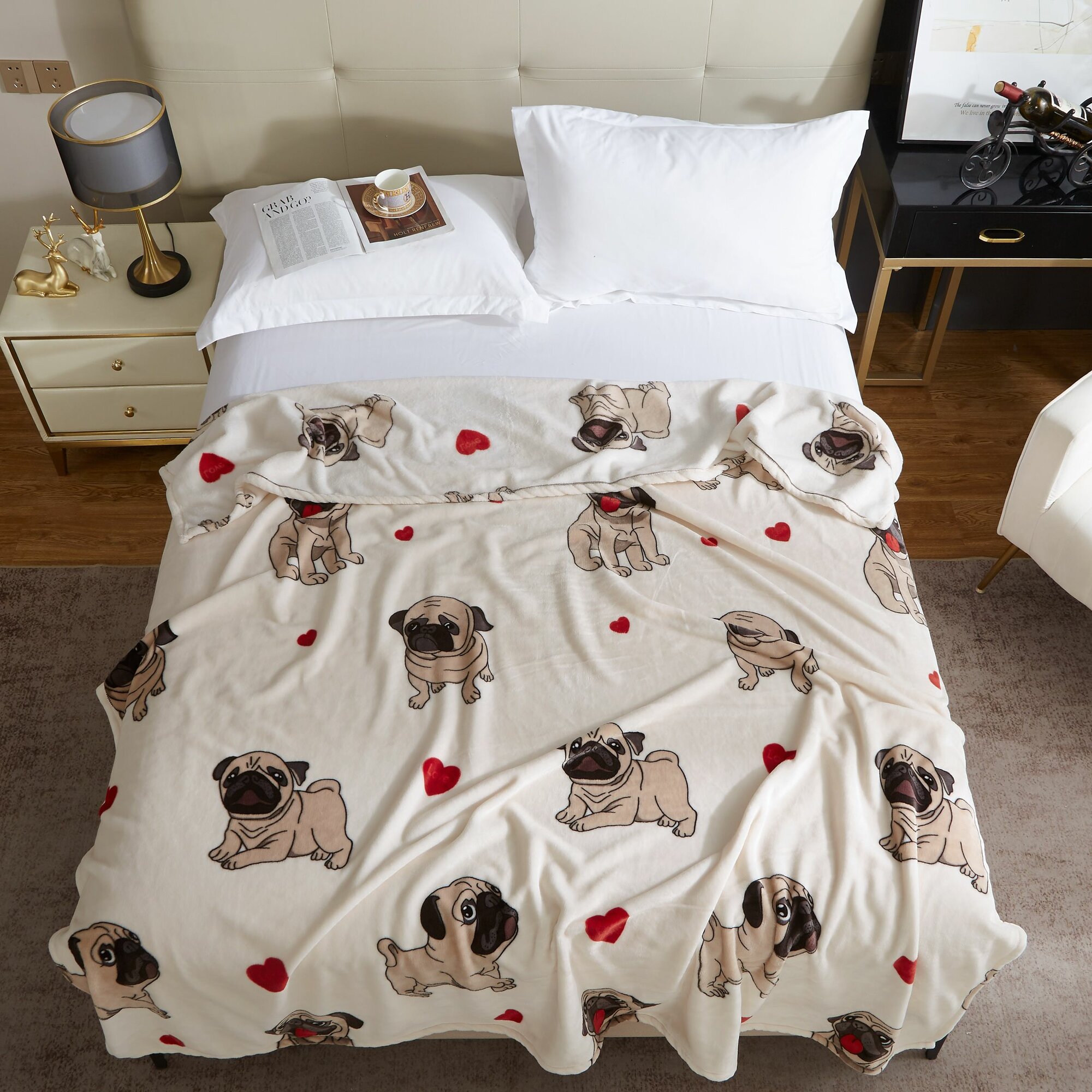 Отзывы на Плед с мопсами 200x220 Cleo California покрывало на кровать и диван флисовый велсофт
