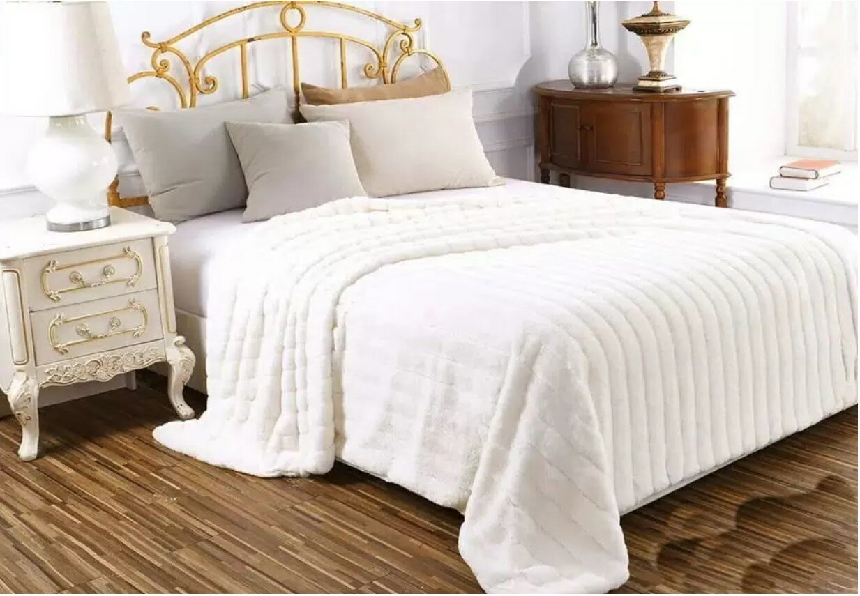 10 цен на Плед-покрывало Шиншилла Кролик 220х200, молочный на кресло кровать в детскую и спальню покрывало в дом гостиную