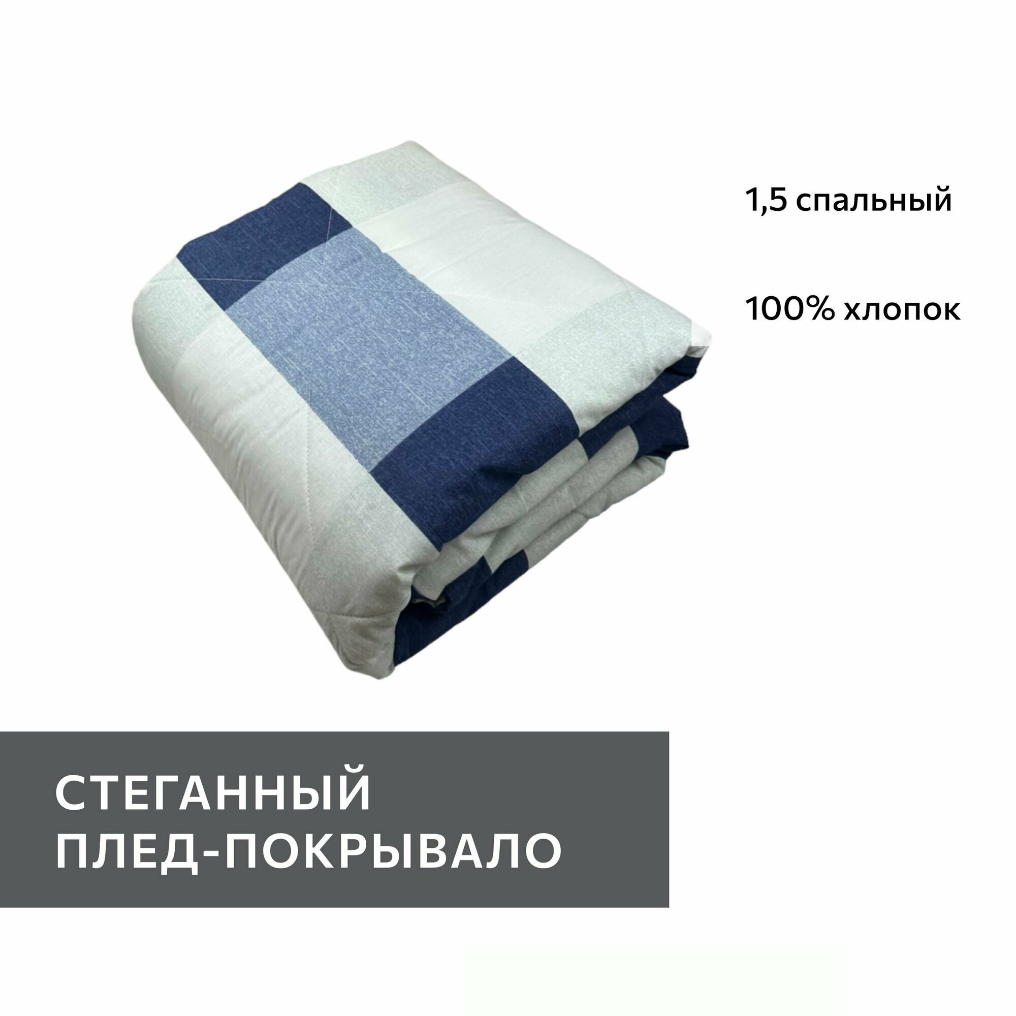 10 цен на Плед-покрывало, покрывало стеганное для 145х205, Принт "Лен-клетка"
