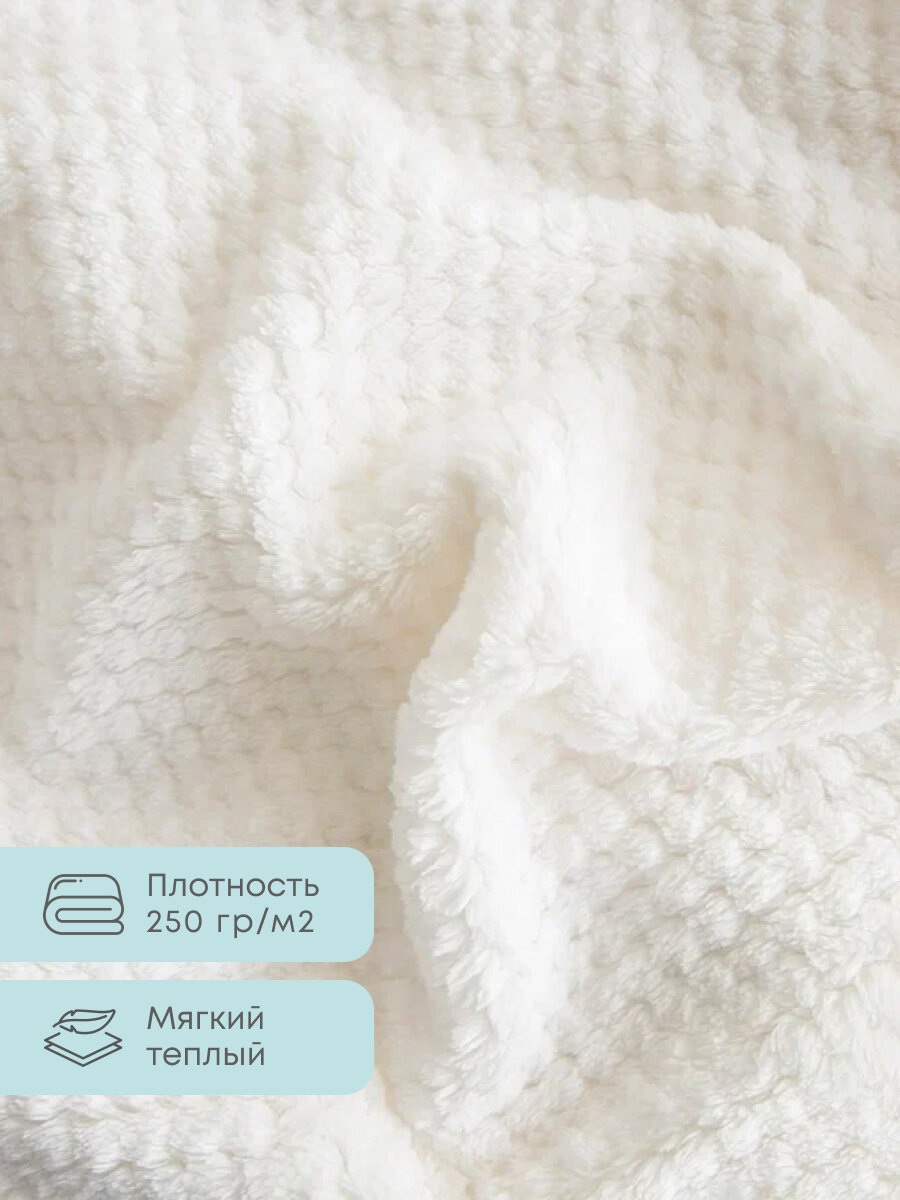 Покрывало 240х260 на кровать диван плюшевое плед, "Жаккард", молочный белый информация: