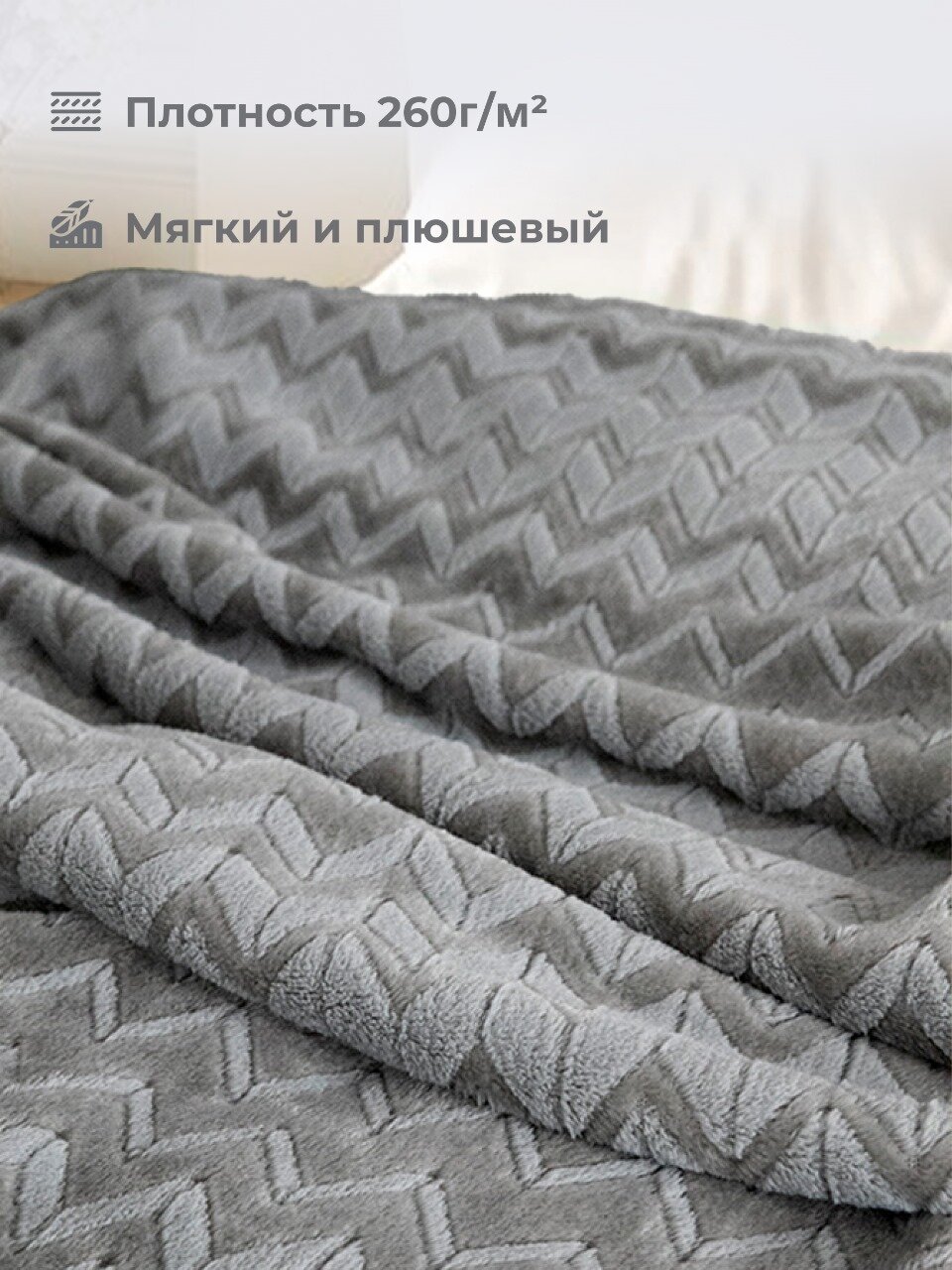 Отзывы на Плед 220х240, Tessolo Home, на кровать диван пушистый покрывало, "Зигзаг", серый